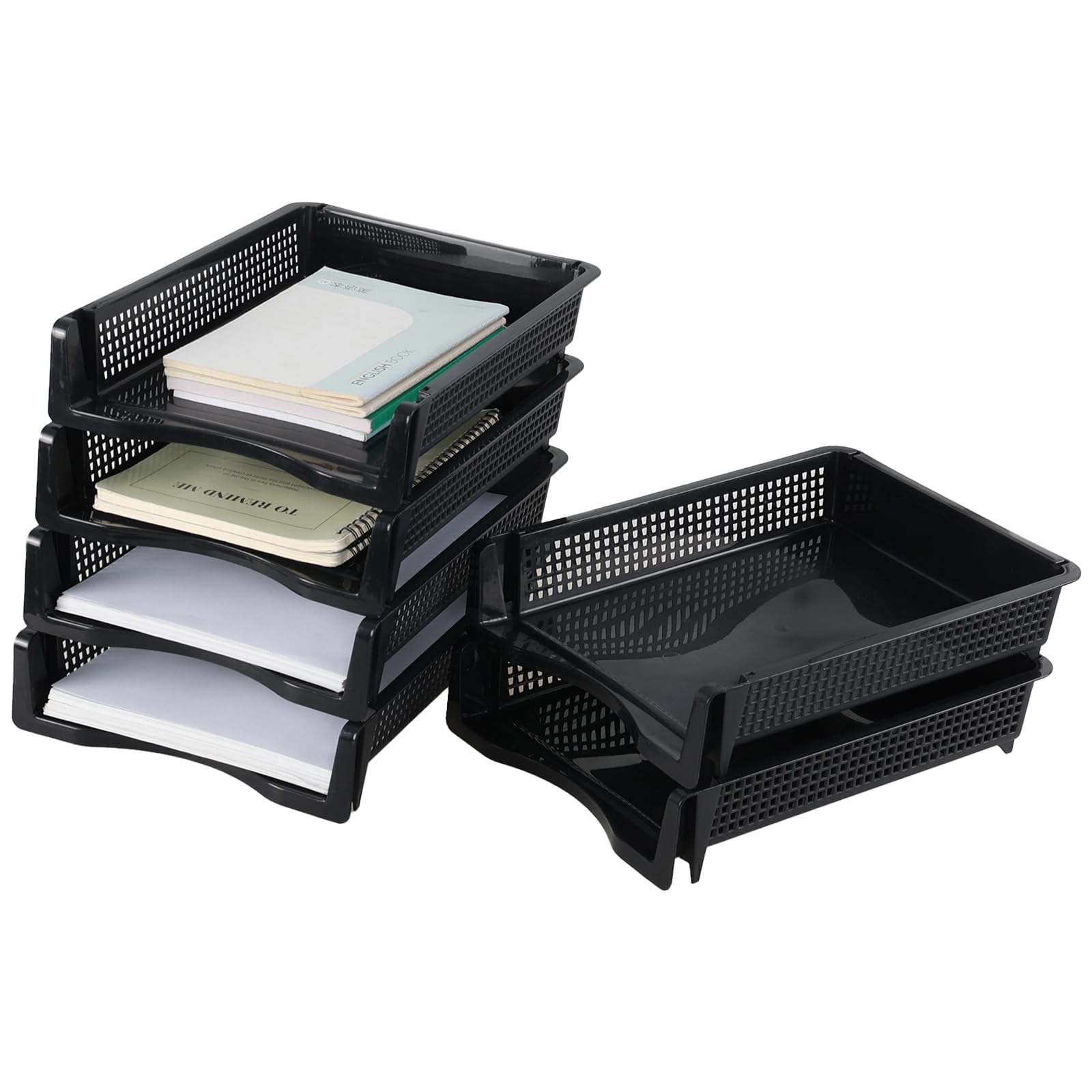 6 Pack Plastic Rectangular Letter Trays, Stackable Desk Organizer Tray for Paper Storage