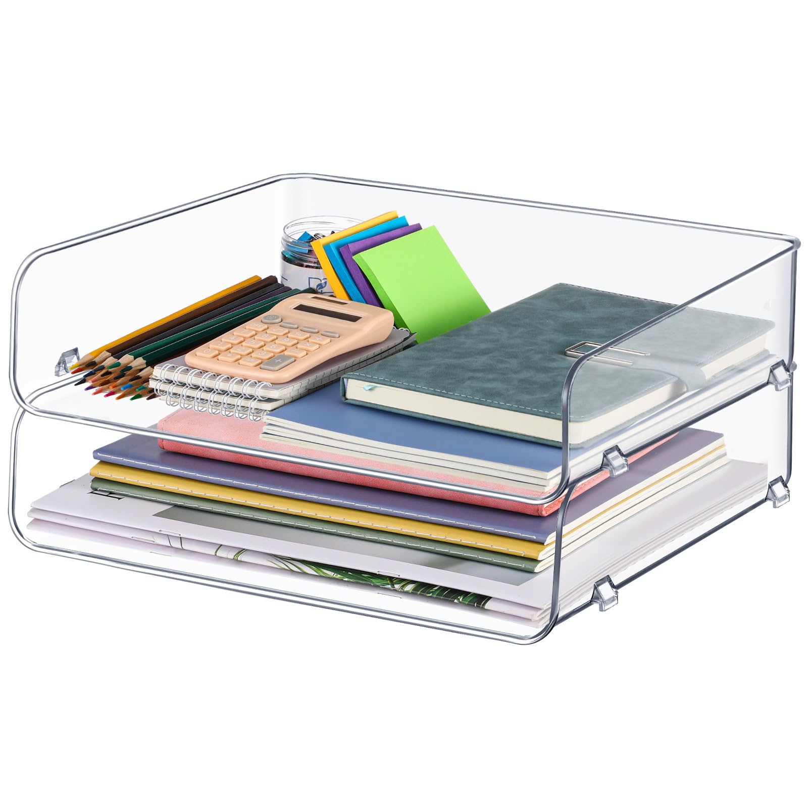 Geelin Organizador de papel apilable de 2 capas, 12.80 x 9.84 x 2.95 pulgadas, organizador de escritorio de PET transparente, band