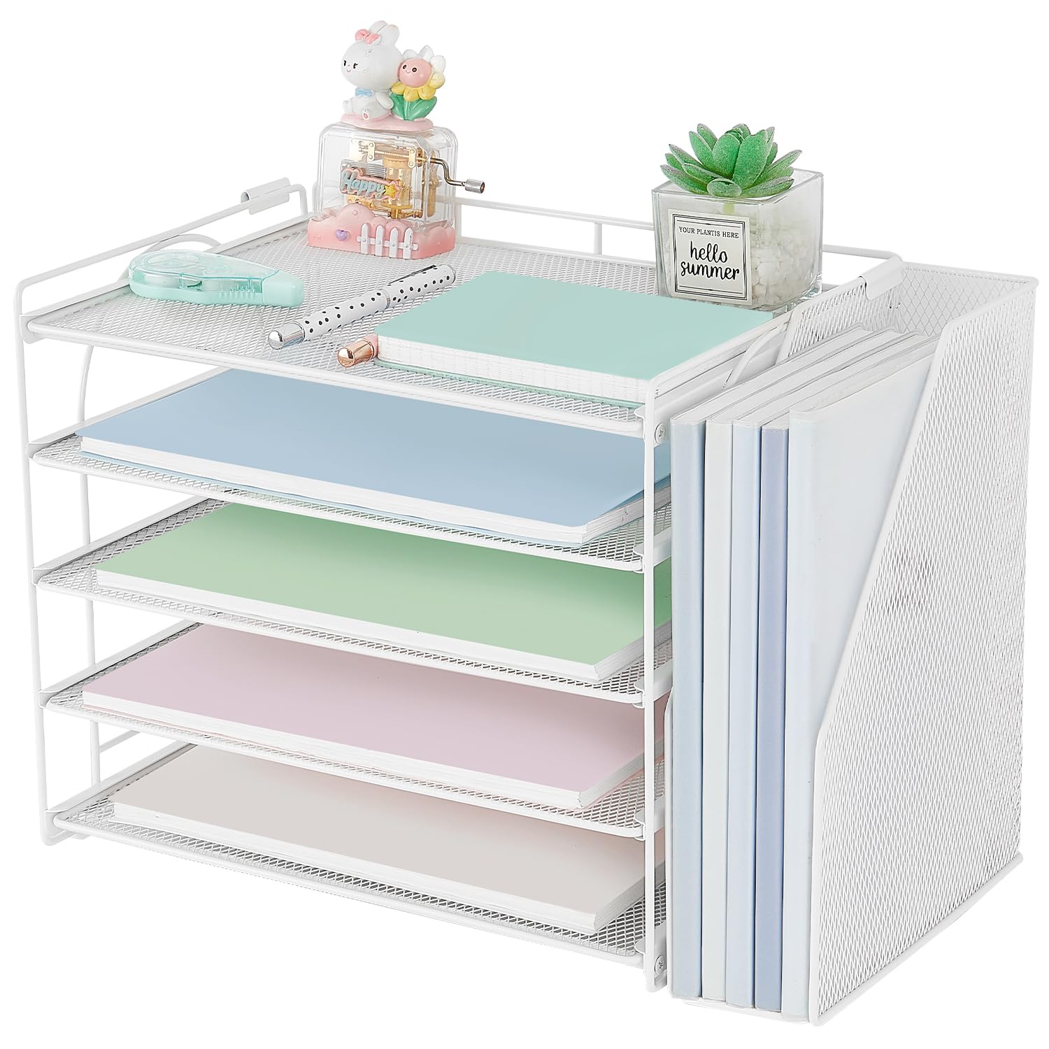 AUPSEN Organizadores y accesorios de escritorio blancos, organizador de papel con bandeja de letras de 5 niveles con soporte ajust