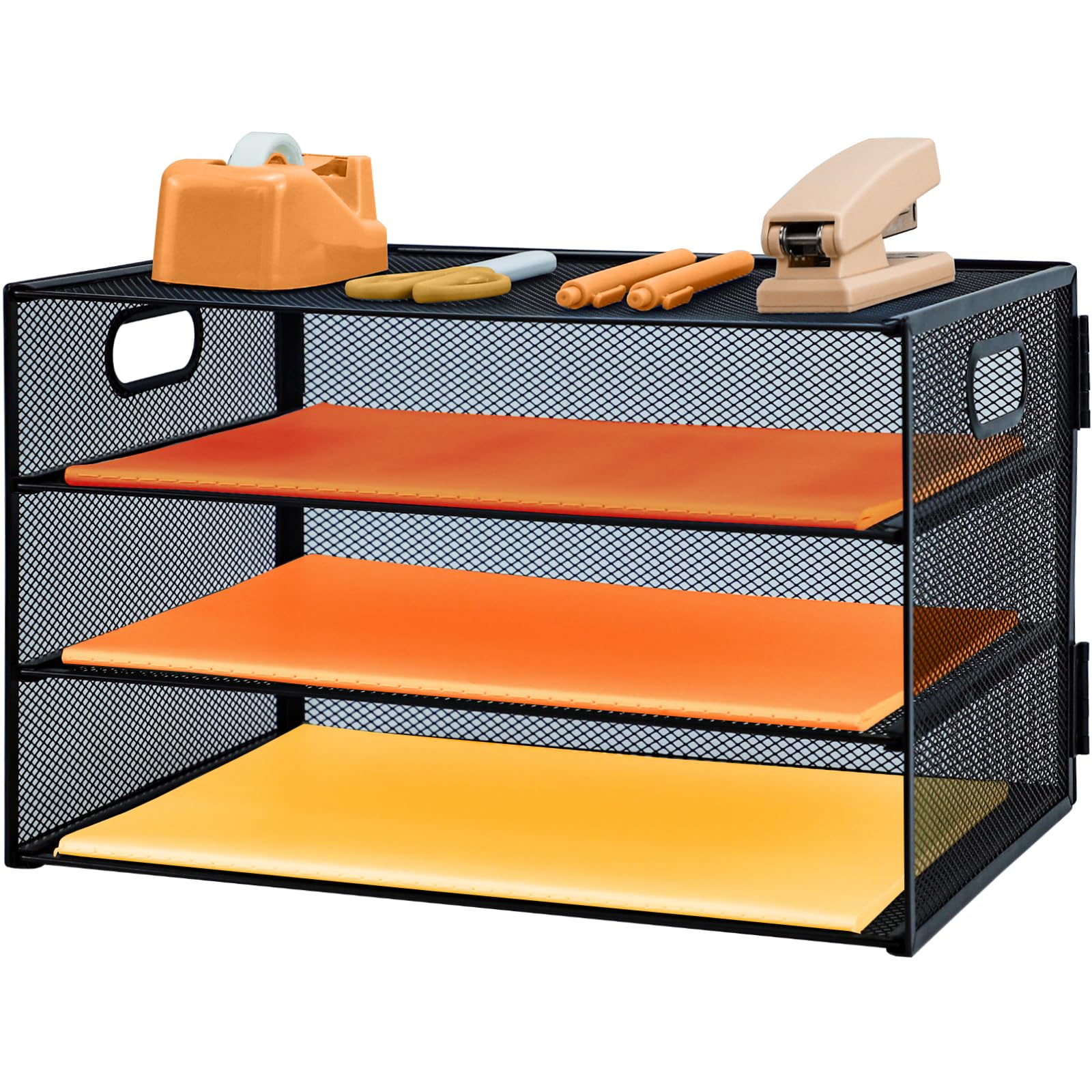 3 Tier Desk Organiser with Handle, Pull-Out Mesh File Organizer for Letter Tray Organizer Mesh Desk Organiser Tray Paper Storage R