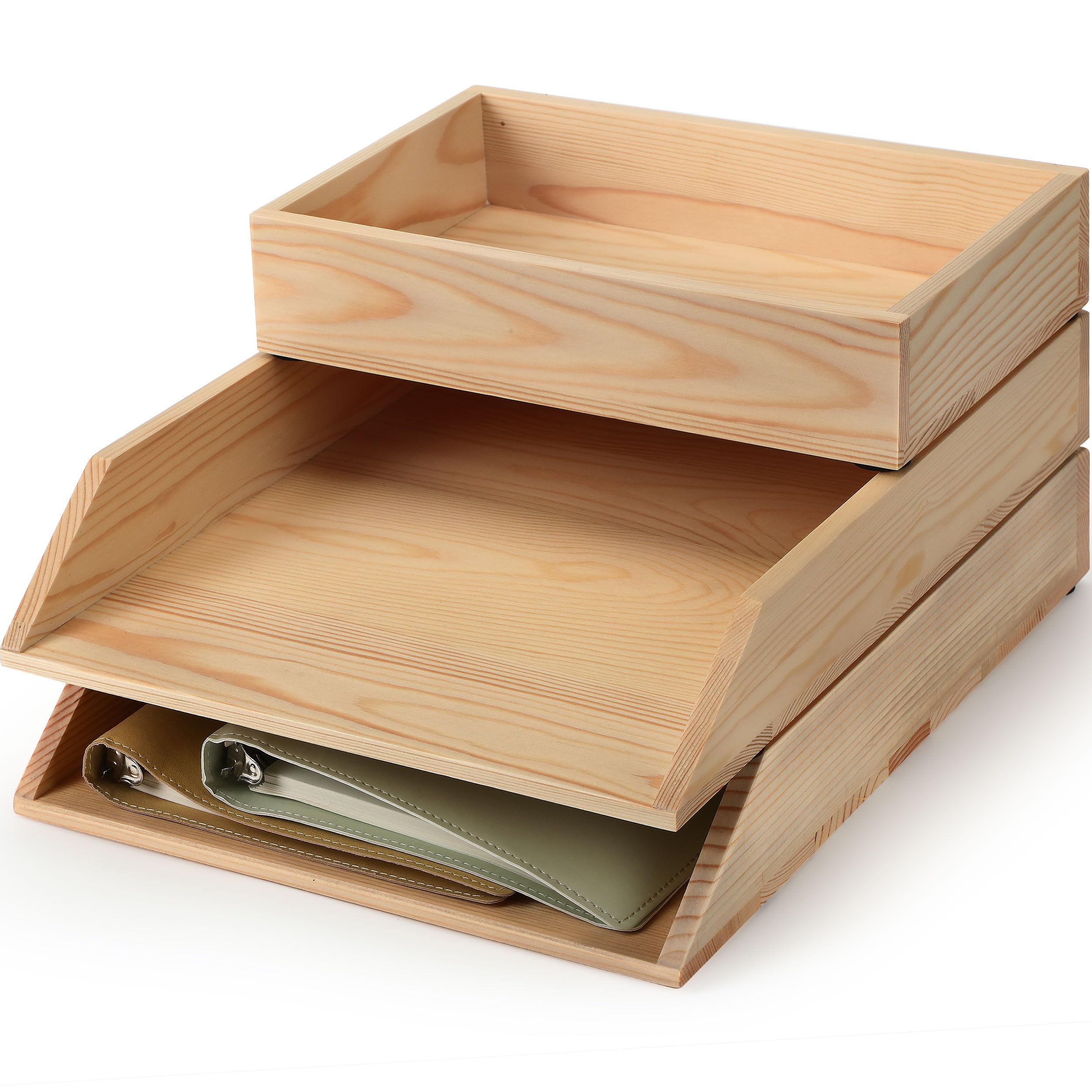 3 Pcs Wooden Letter Trays, Wood Letter-Size Desk Organizer, Heavy Duty 3 Tier Stackable Support Paper Tray Tabletop Inbox Drawer D
