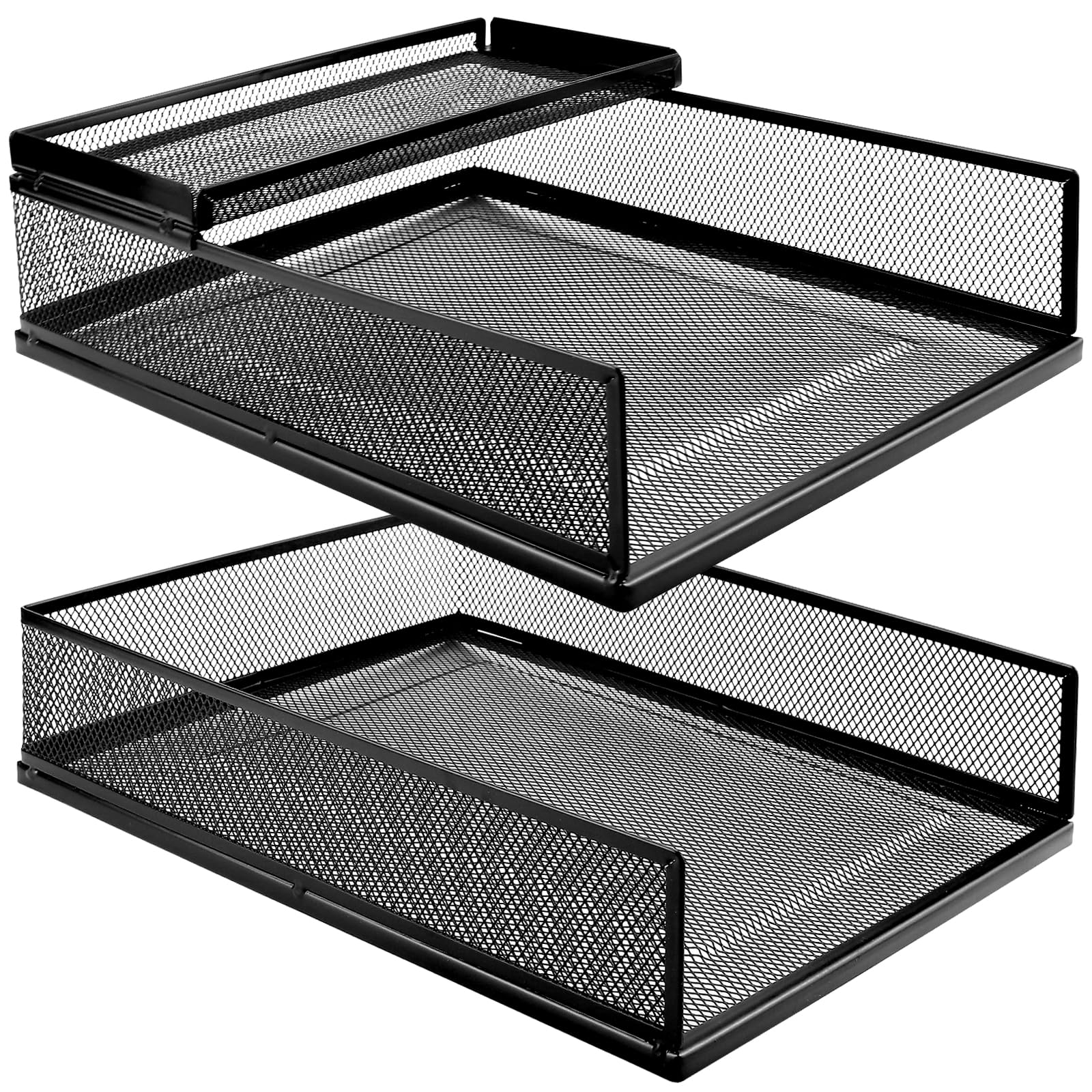 Metal Letter Tray Set, Stackable Wire Mesh Desk Organizer – Front Load File Holder for A4 Paper, Office, Home, Classroom (Black)