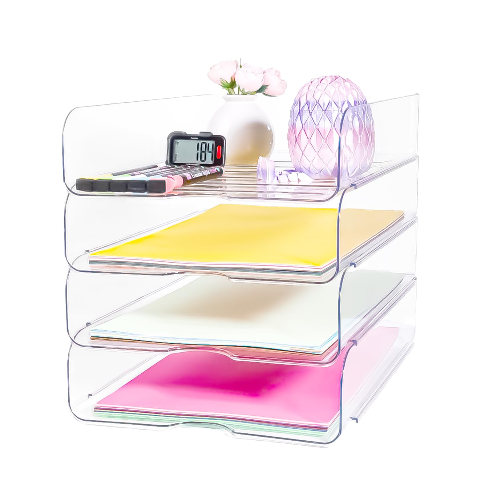 Tatuo Paquete de 4 bandejas de papel apilables de plástico para cartas, organizador de escritorio, organizador de papel, accesorio