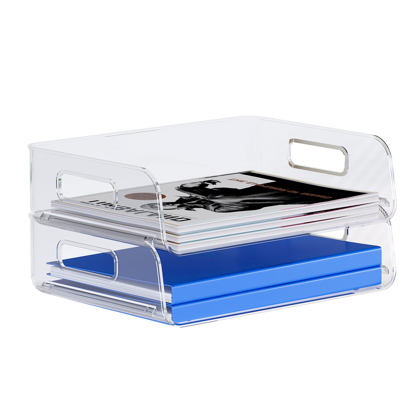 TecUnite 4 bandejas apilables para cartas, color azul, rectangulares, apilables, tamaño carta, organizador de plástico, bandeja de
