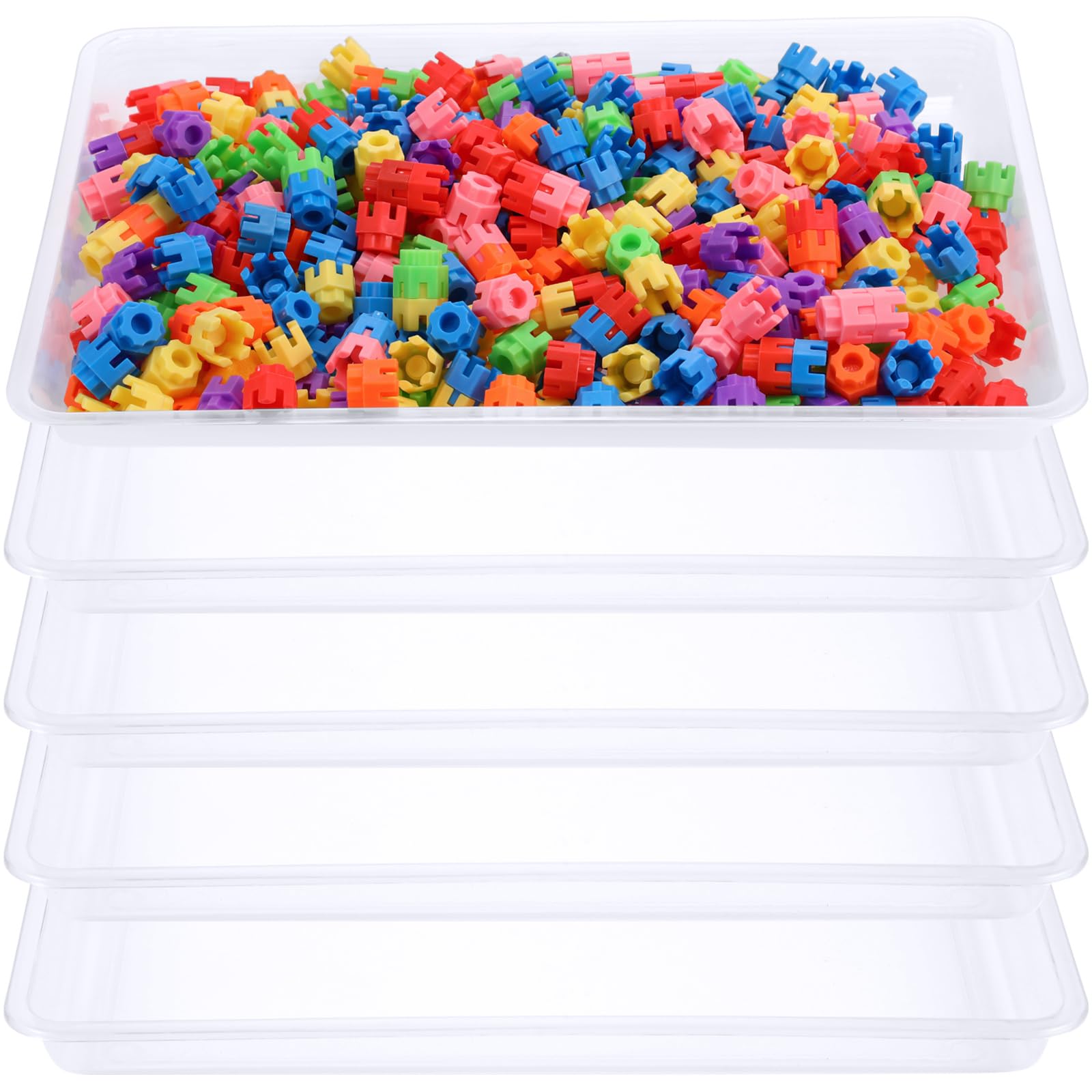 Hoteam Bandeja de almacenamiento plana de 5 piezas, organizador de papel para aula, bandeja de plástico, apilable, organizador de