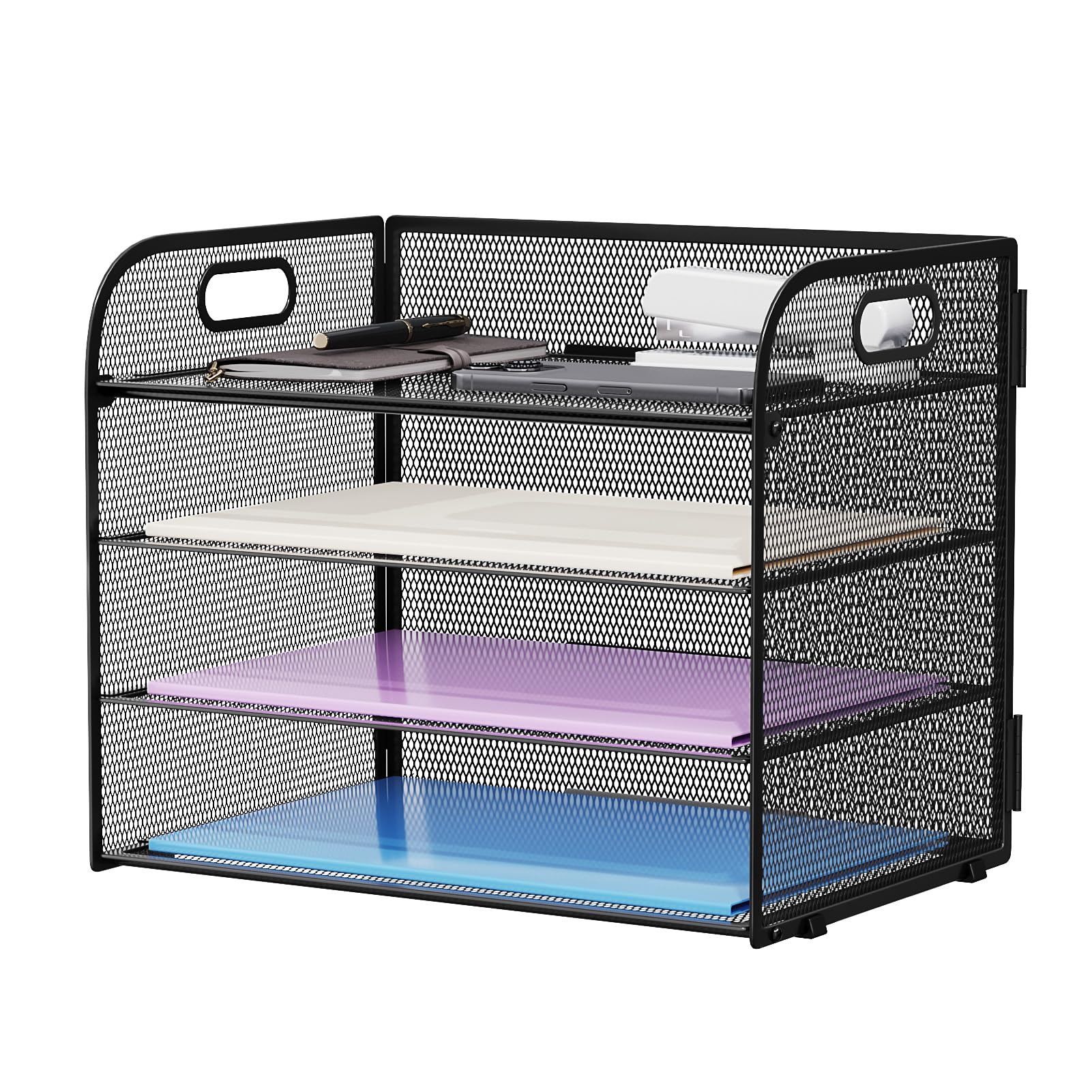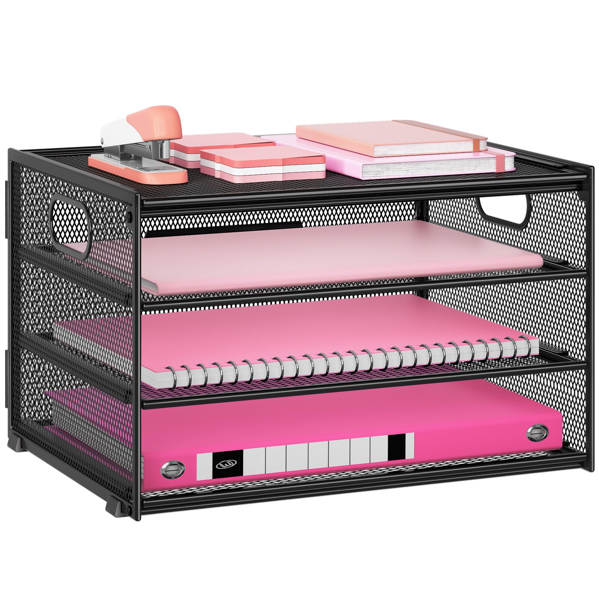 Marbrasse Bandeja organizadora de papel de 4 niveles, organizador de archivos de escritorio de malla con asa, organizador clasific