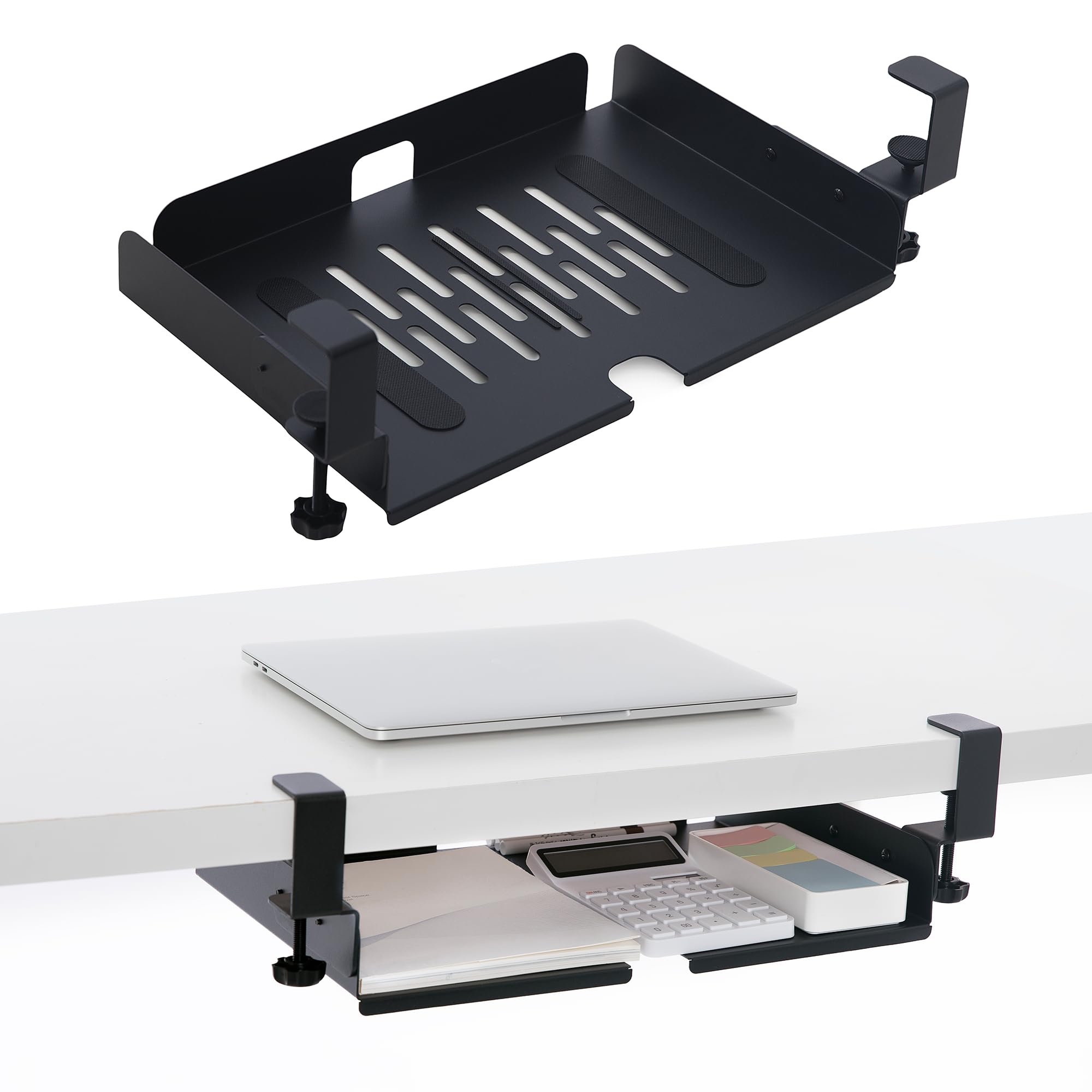 Abrazadera en estante debajo del escritorio, cajón de almacenamiento de organizador de espacio de trabajo, extensor de mesa de alm