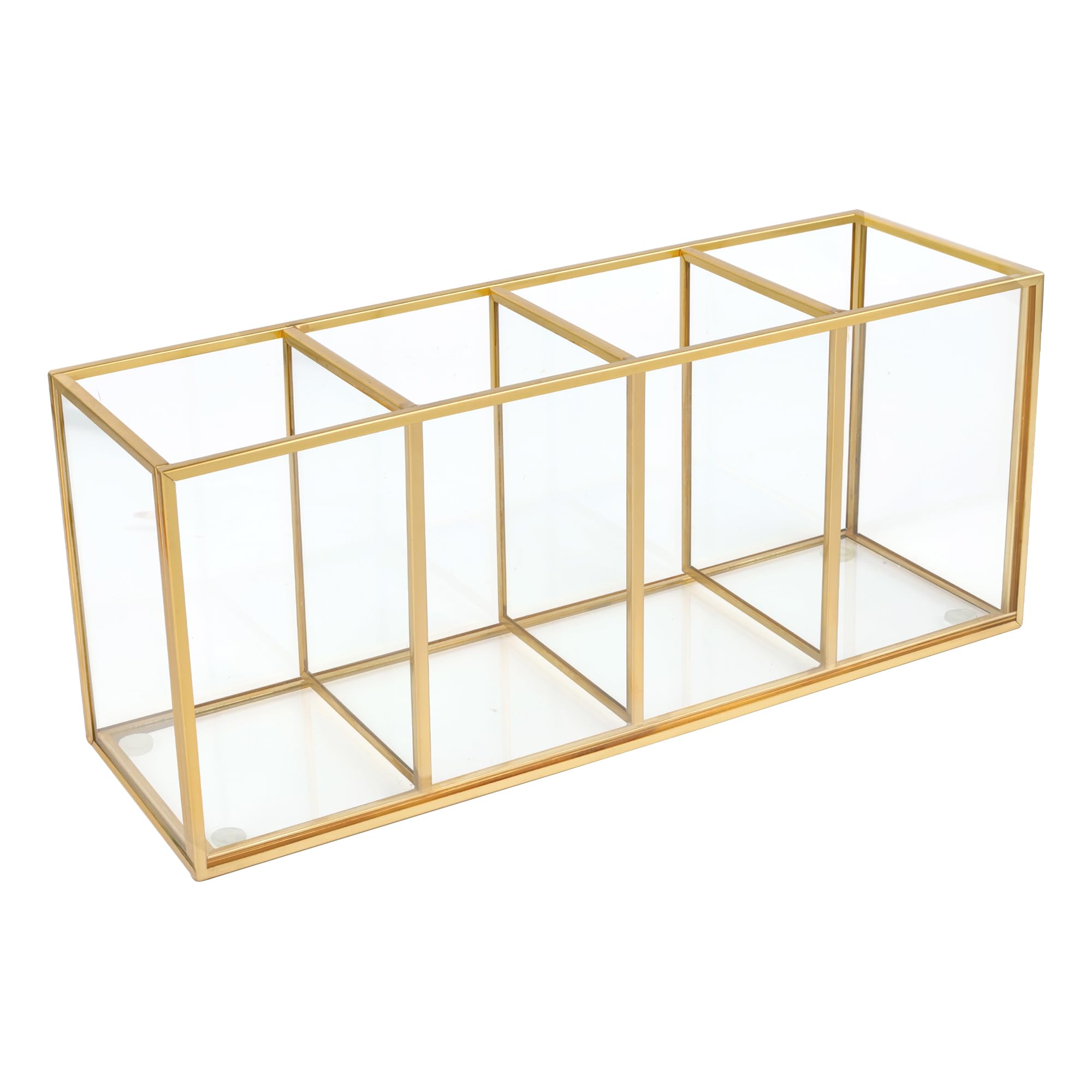 Portalápices para escritorio, soporte para bolígrafo de vidrio templado, 3 y 4 compartimentos, organizador de almacenamiento de es