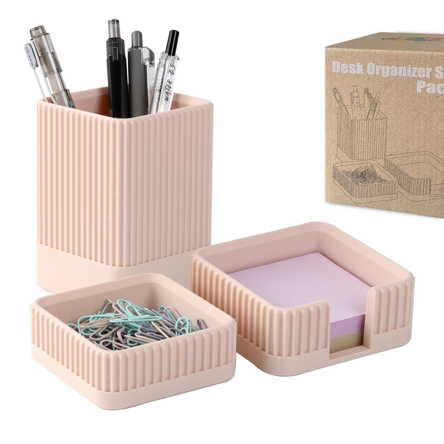 Juego de 3 organizadores de escritorio estéticos y accesorios con soporte para bolígrafos, soporte para clip, soporte para notas a