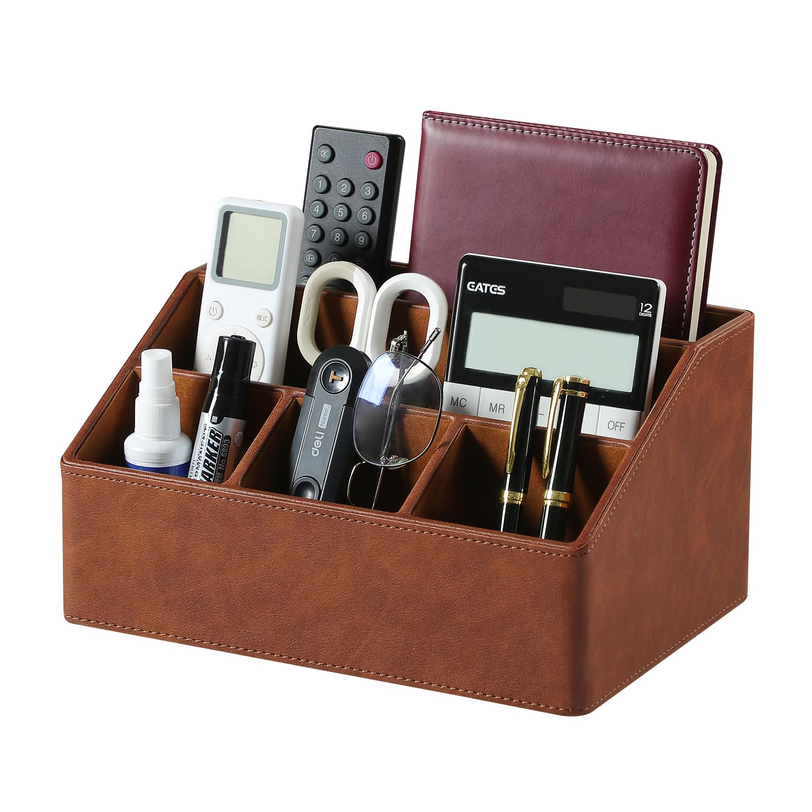 Soporte de control remoto con 5 compartimentos para suministros de arte de oficina, organizador de mesita de noche de piel sintéti