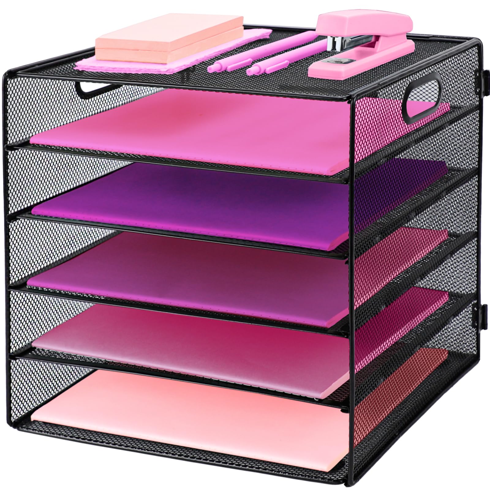 Marbrasse Bandeja organizadora de papel, organizador de archivos de malla de 5 niveles con asa, organizador de escritorio clasific