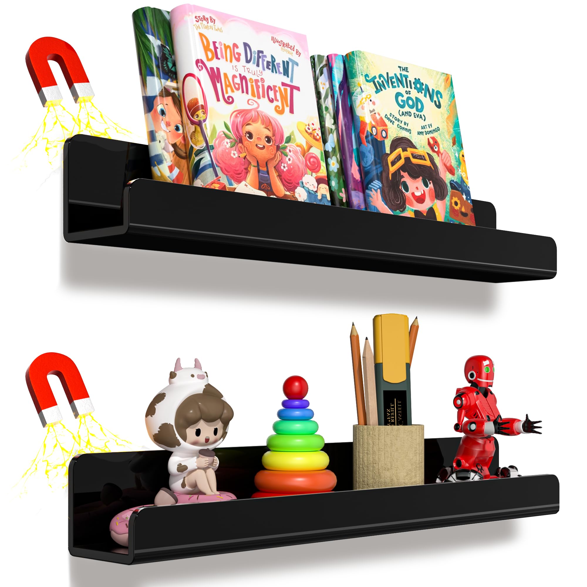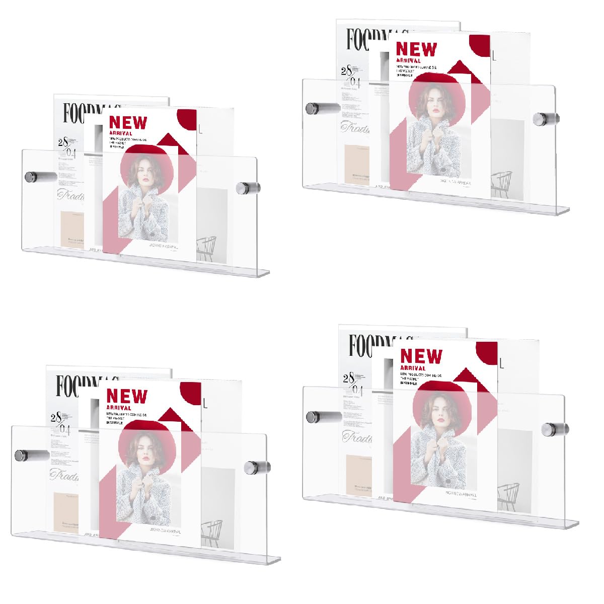 4 revisteros acrílicos de 16 pulgadas para montaje en pared, organizador de pared de acrílico, organizador de pared flotante de 16