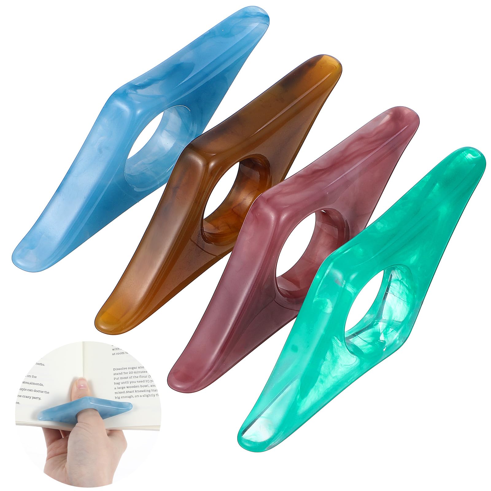 Soporte de página de libro de resina para pulgar, paquete de 4 soportes de resina hechos a mano para herramientas de lectura, acce