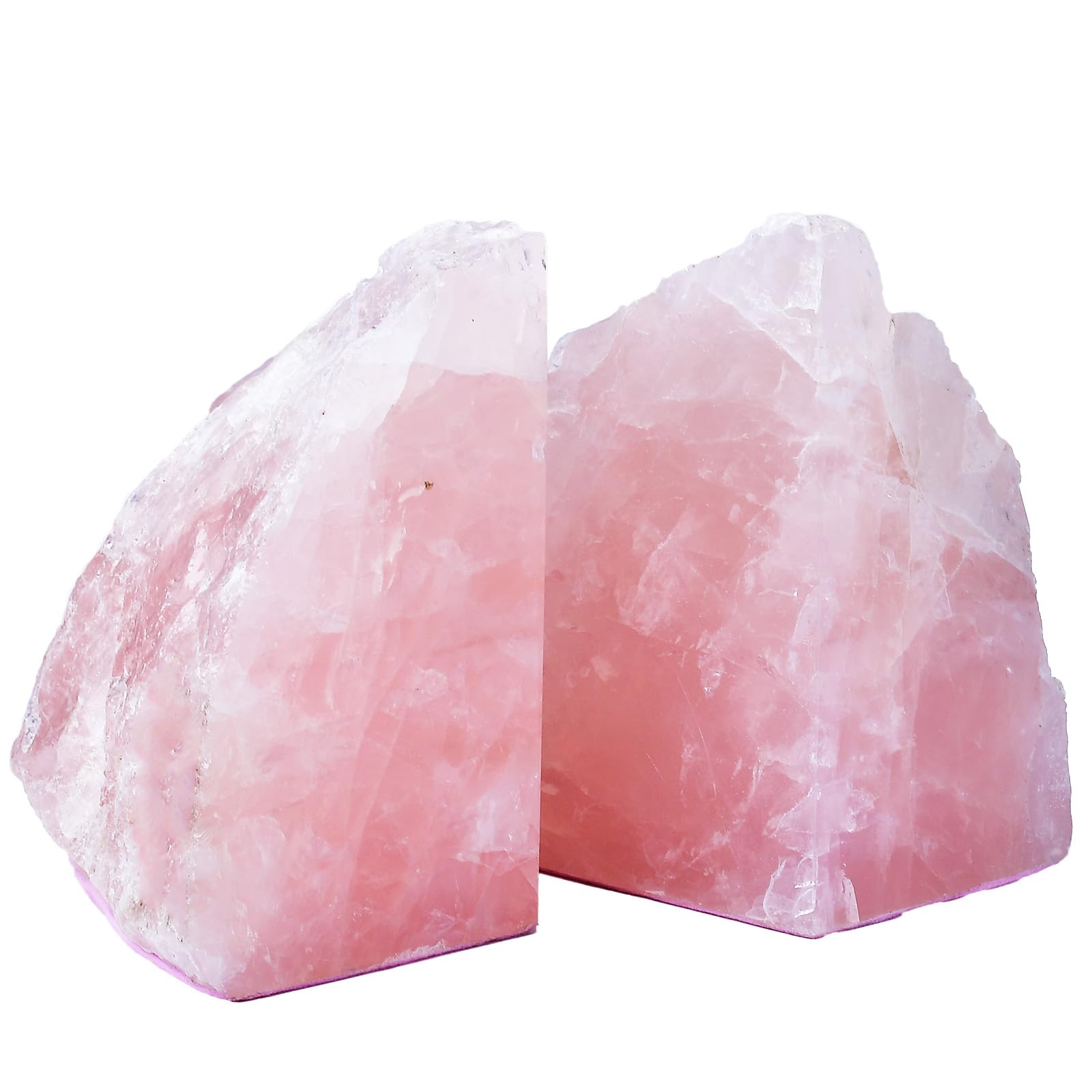 Sujetalibros de cuarzo rosa resistente con piedra de cristal curativo rosa para libros, extremos de libros decorativos para oficin