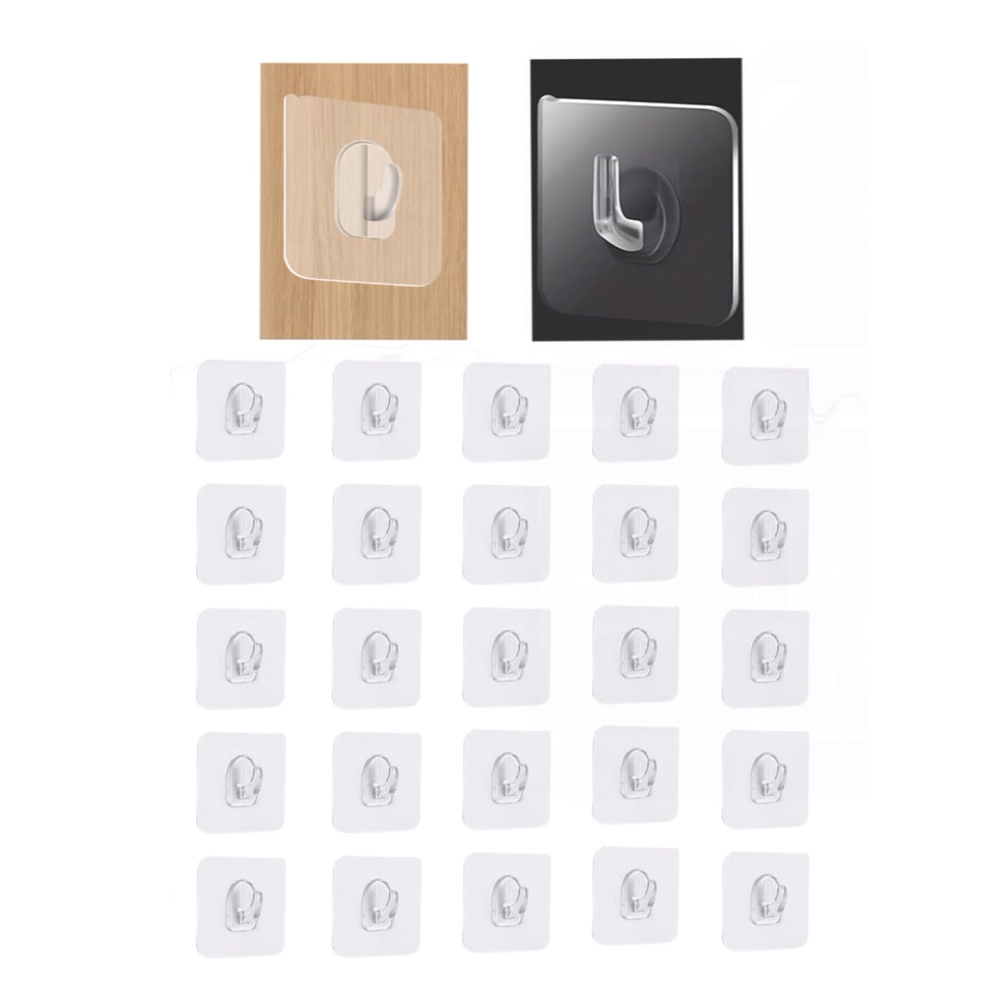 Paquete de 25 ganchos adhesivos transparentes, ganchos de pared resistentes de 2.4 x 2.4 pulgadas, gancho adhesivo transparente de