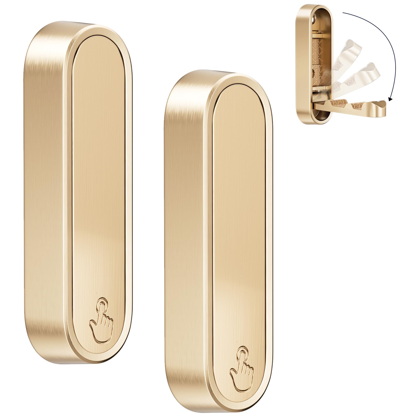 Modern Adhesive Wall Hooks, Gold, Heavy Duty Metal, Decorative Stick-on Hangers for Home Organization, 2 Pack (4, Golden)