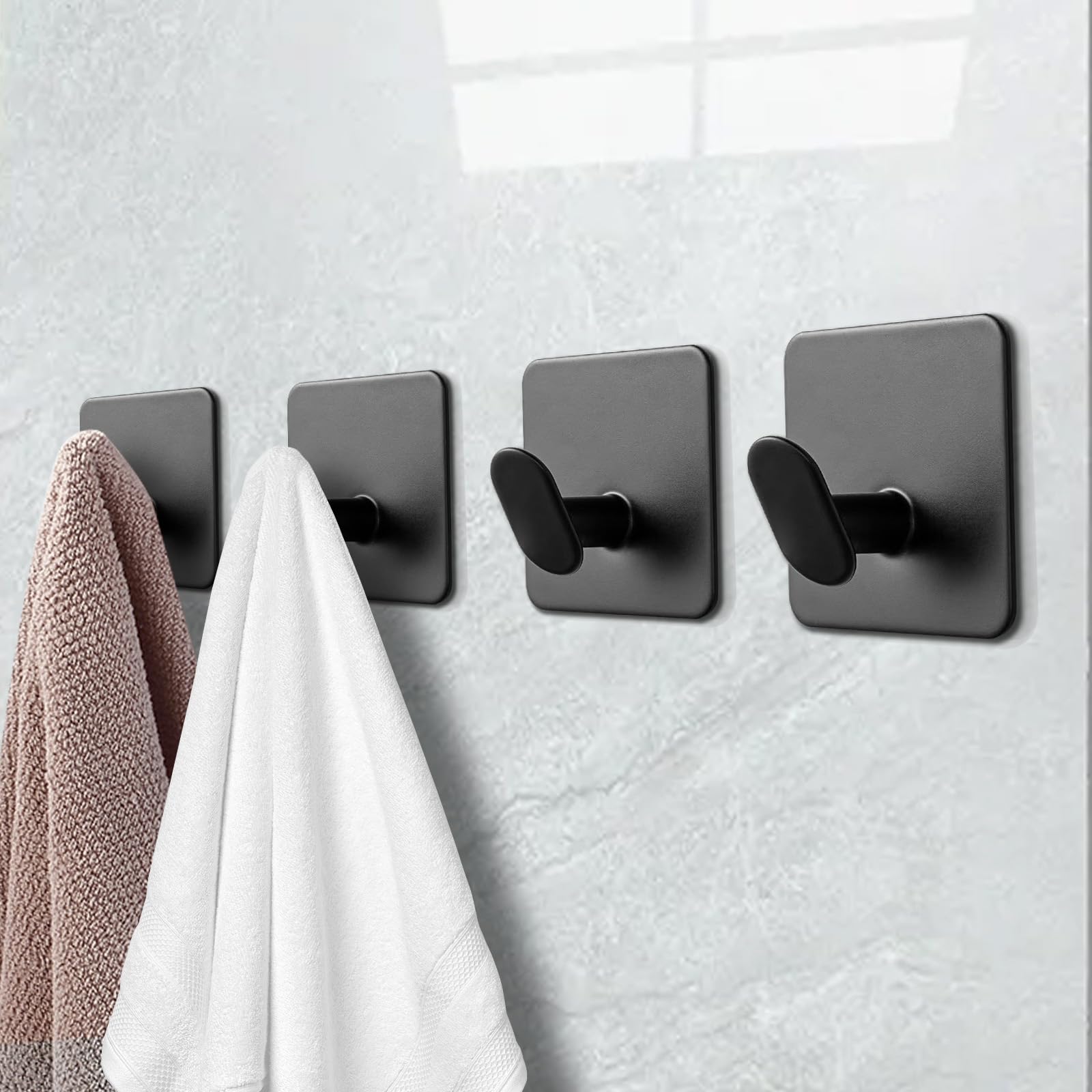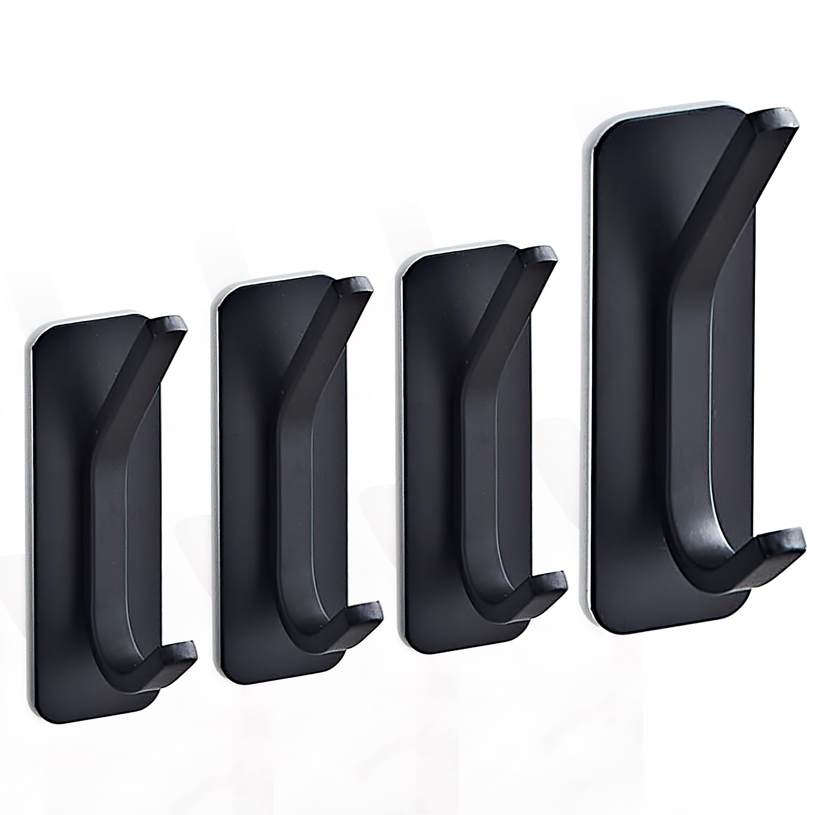 4 Pcs Adhesive Hooks – Towel/Coat Hooks Wall Hook Stick on Bathroom or Kitchen (Matte Black, Stainless Steel)