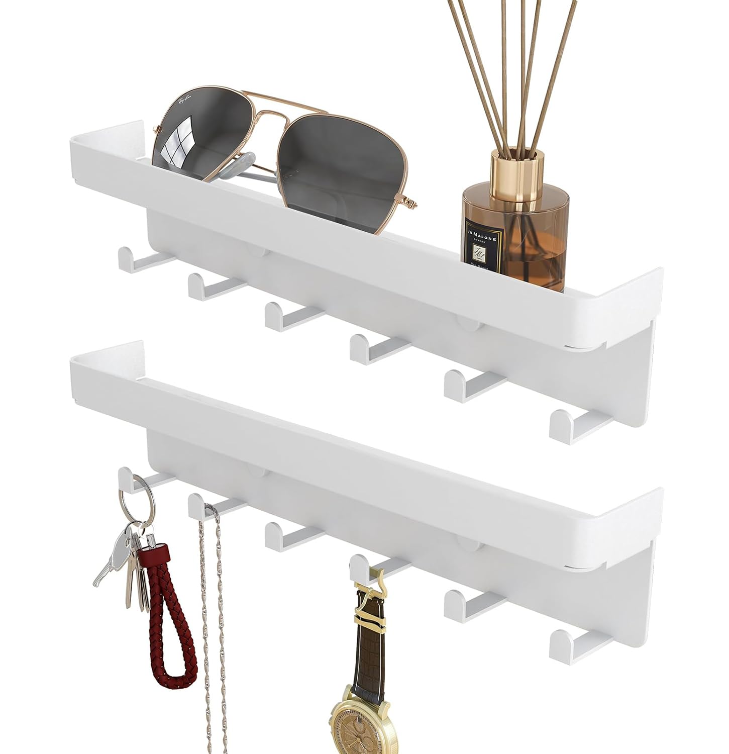 2 soportes para llaves de pared, organizador rústico de llaves y correo, 6 ganchos para llaves con estante pequeño con bandeja adh