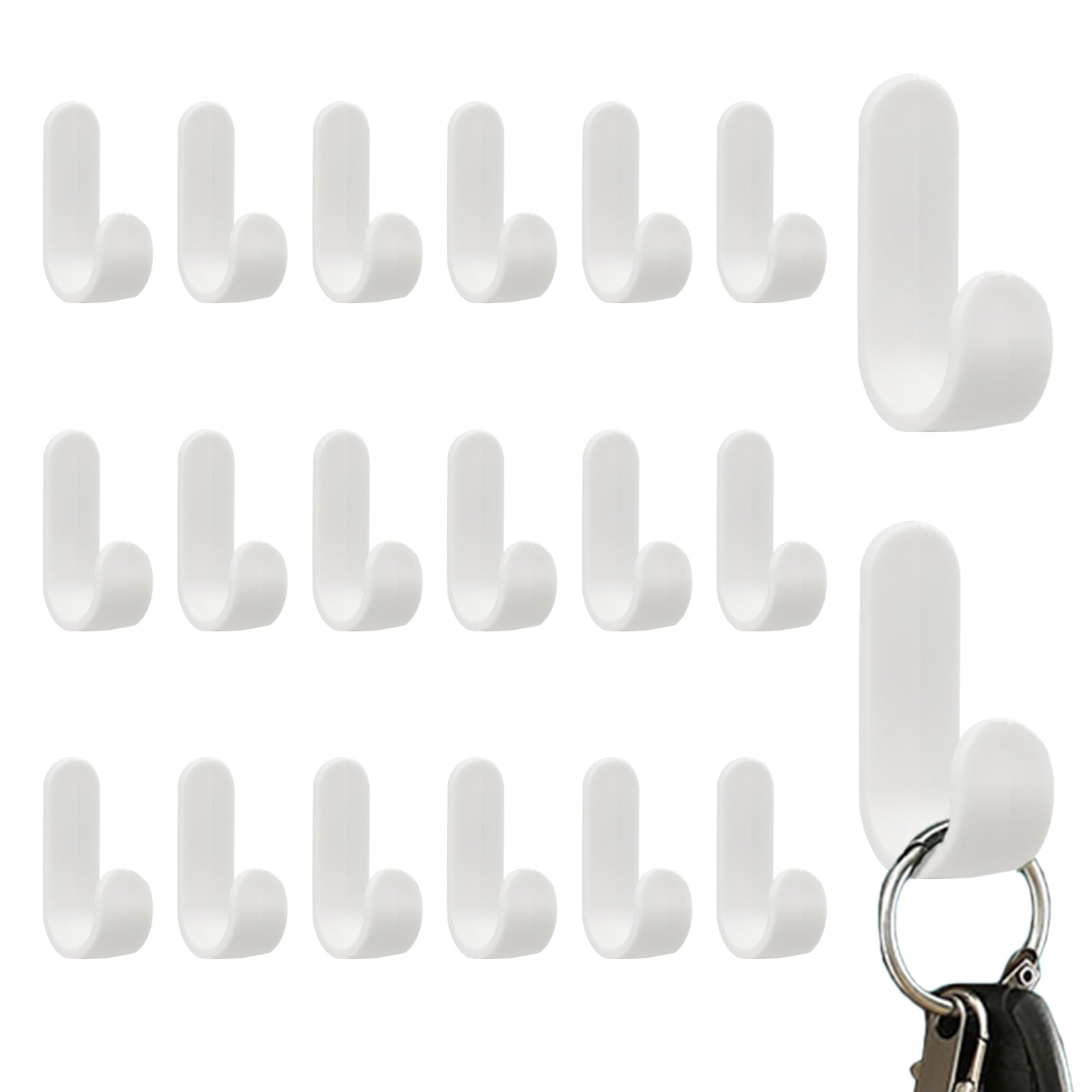 Paquete de 20 ganchos adhesivos, ganchos decorativos de plástico en forma de J, ganchos de pared autoadhesivos para sombreros, toa