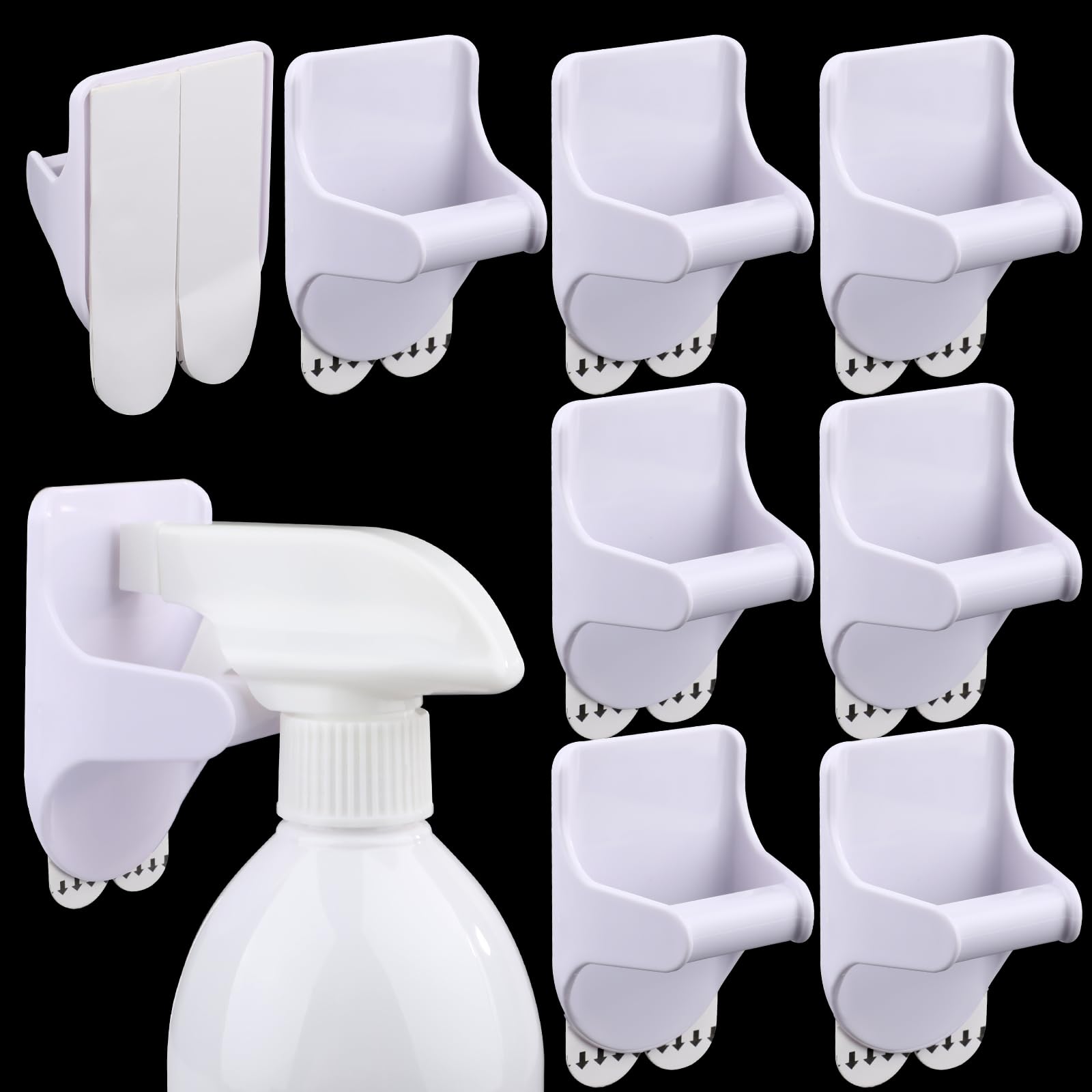 8Pcs Wall Mount Spray Bottle Holder,No Damage Strong Adhesive Bottle Hooks Spray Bottle Hanger,Spray Bottle Rack Organizer Hanger