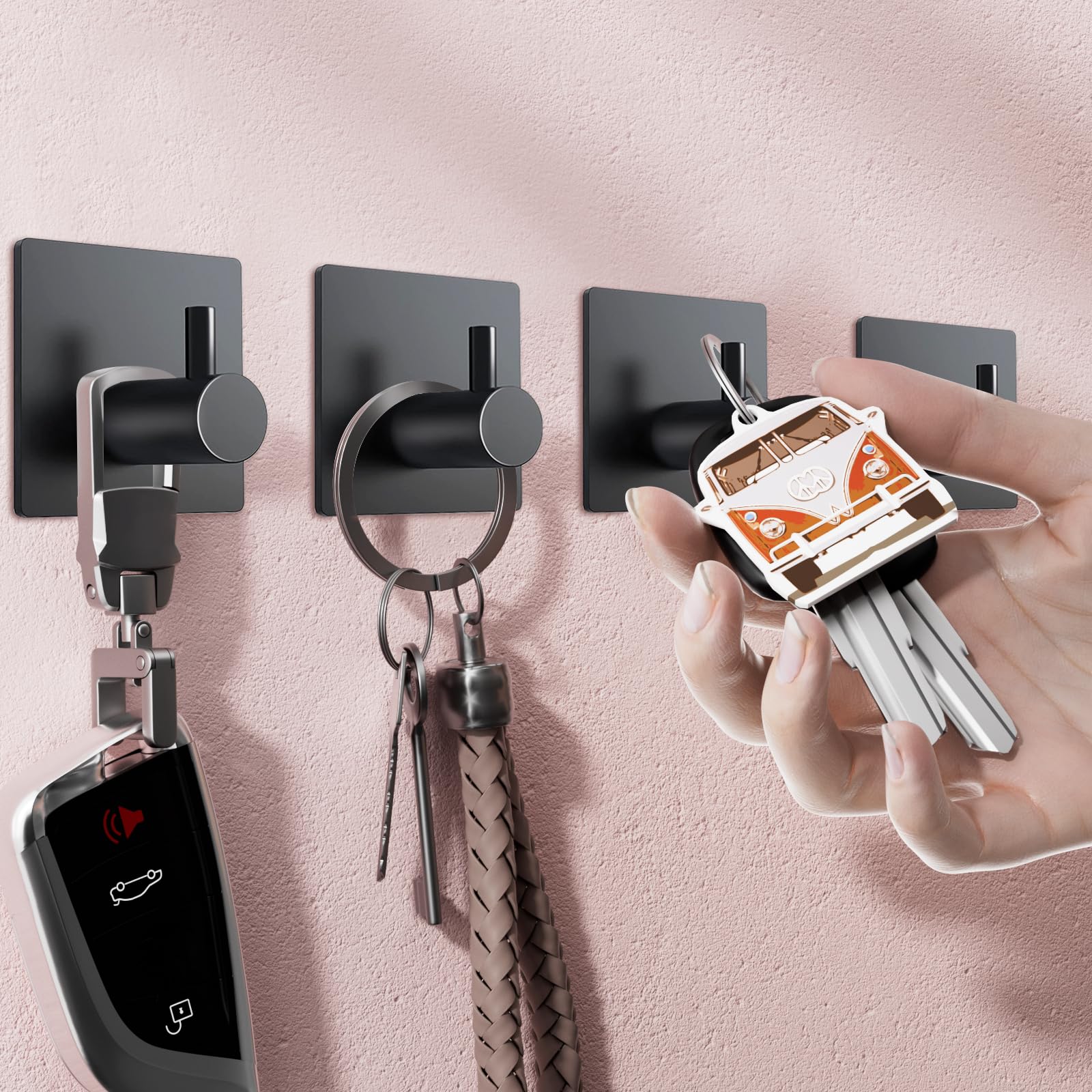 VAEHOLD Paquete de 4 ganchos para toallas de bata para baños, color negro mate, ganchos para colgar abrigos de acero inoxidable re