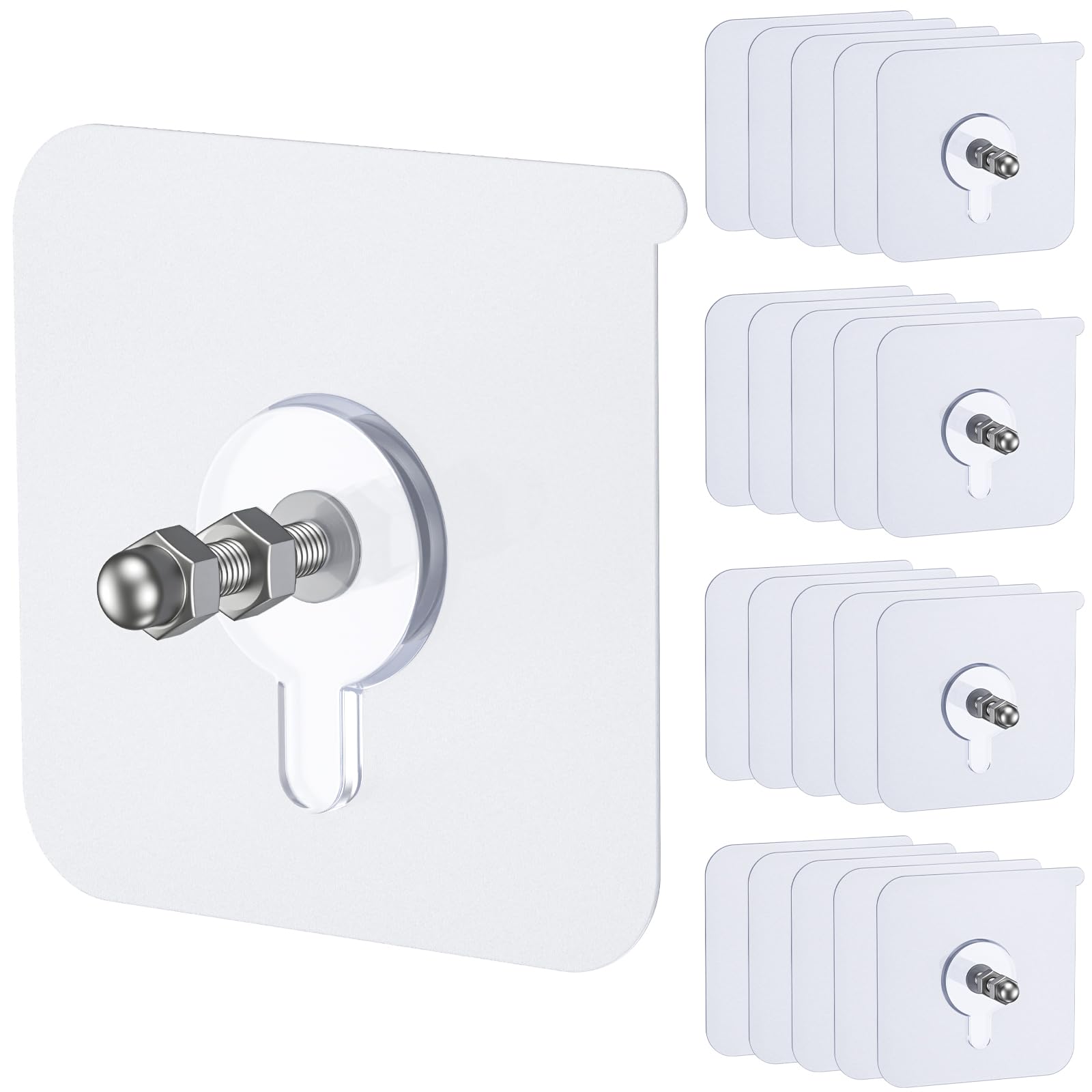 Ganchos adhesivos grandes, paquete de 20 ganchos adhesivos transparentes impermeables para colgar ganchos de pared resistentes de