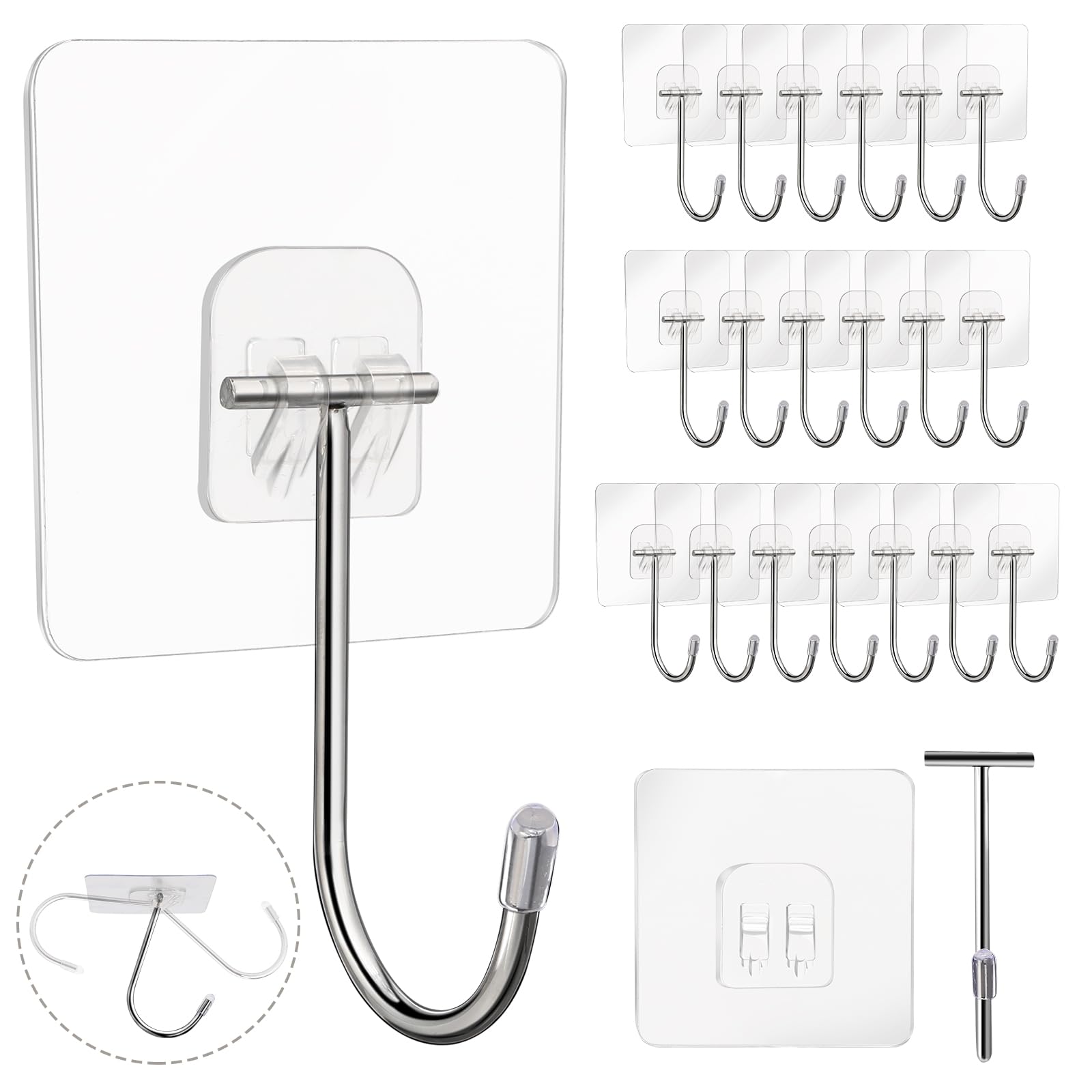 Ganchos adhesivos, ganchos de pared de acero inoxidable transparente sin costuras ultra fuertes para cocina, baño, techo, puerta (