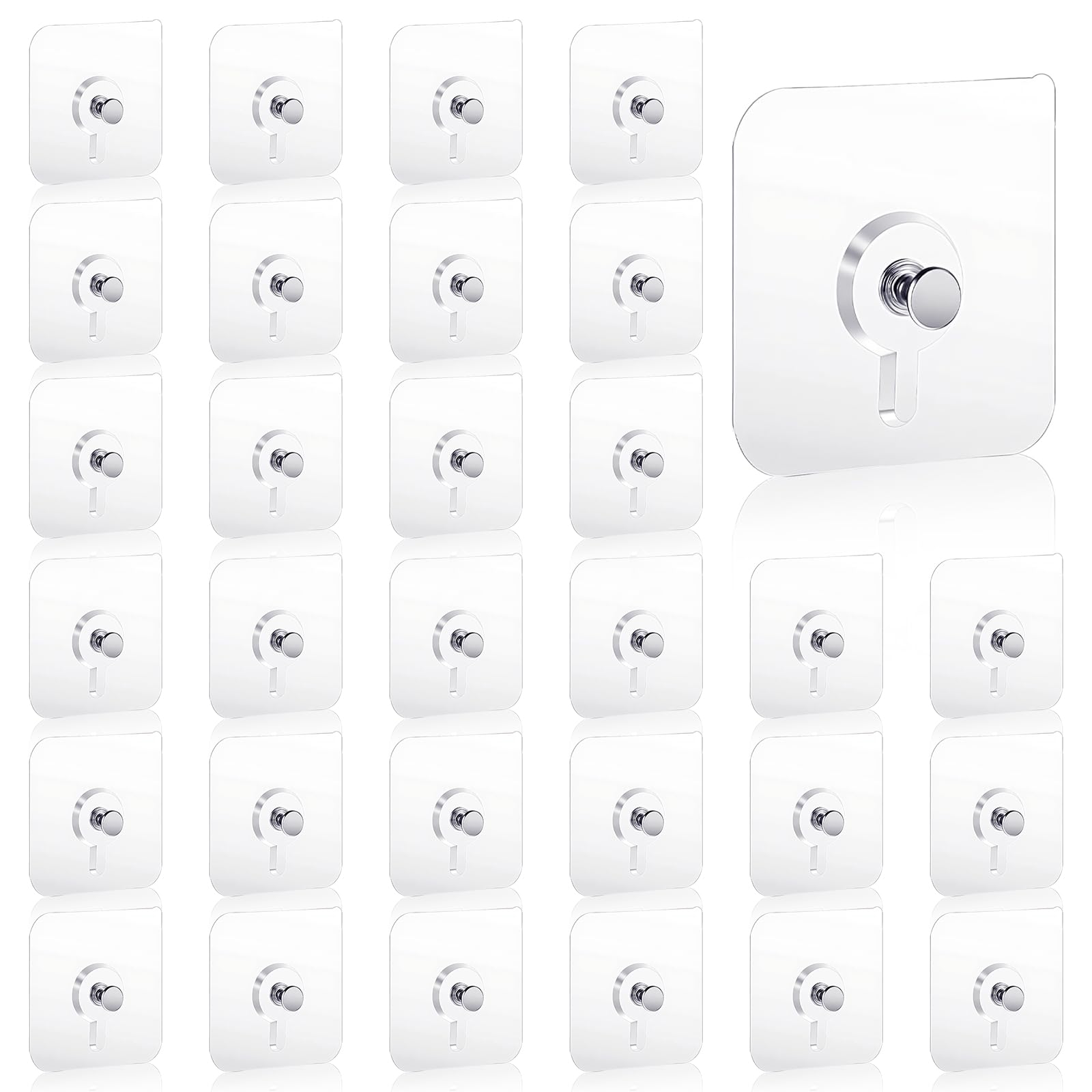 Wall Hooks – 33 lbs Max, Transparent, Seamless, Waterproof & Oilproof – Heavy Duty Adhesive Coat & Towel Hooks(20 Pack)