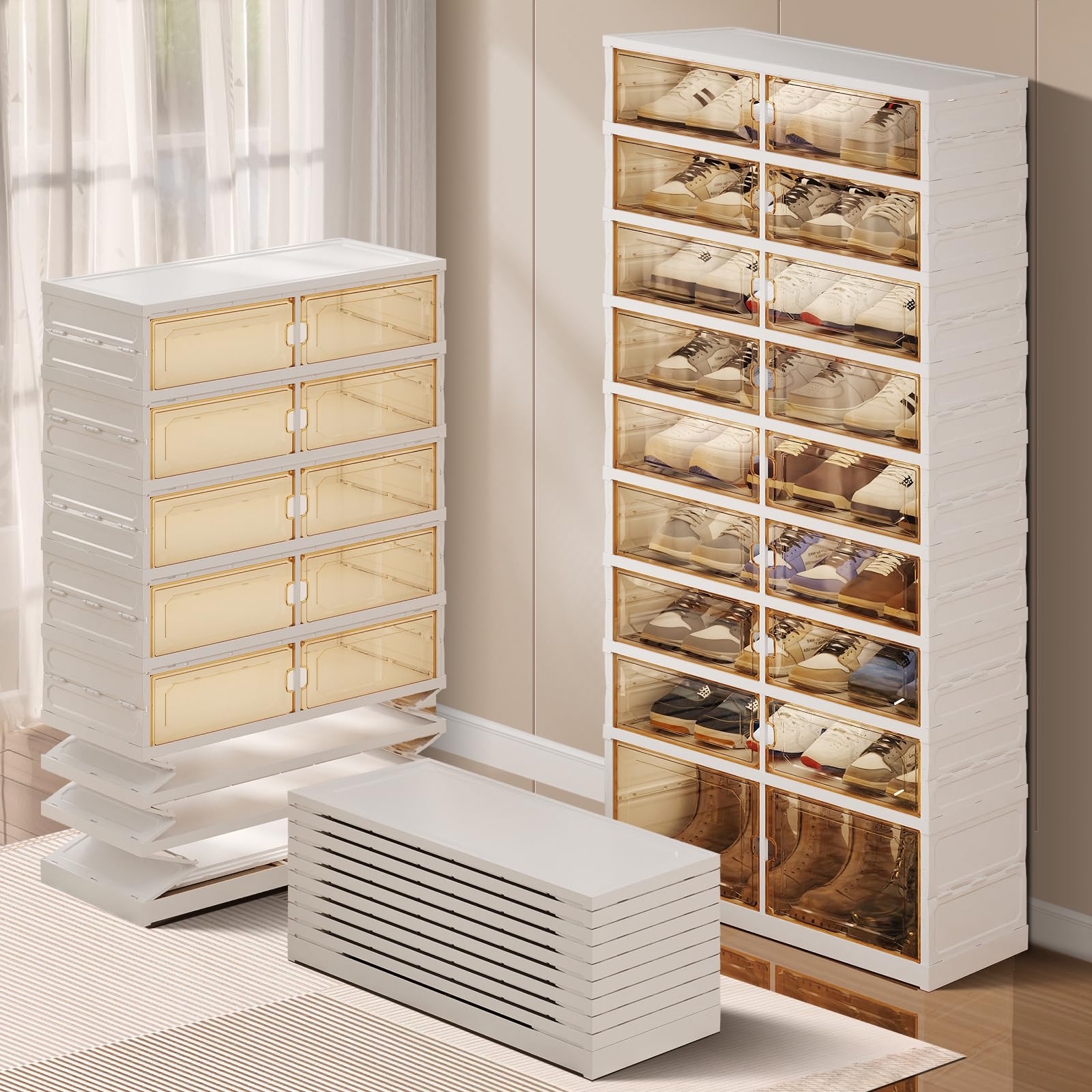Organizador de zapatos hasta 72 pares, zapatero cubierto con puerta transparente (transparente, plástico, apilable), organizador d