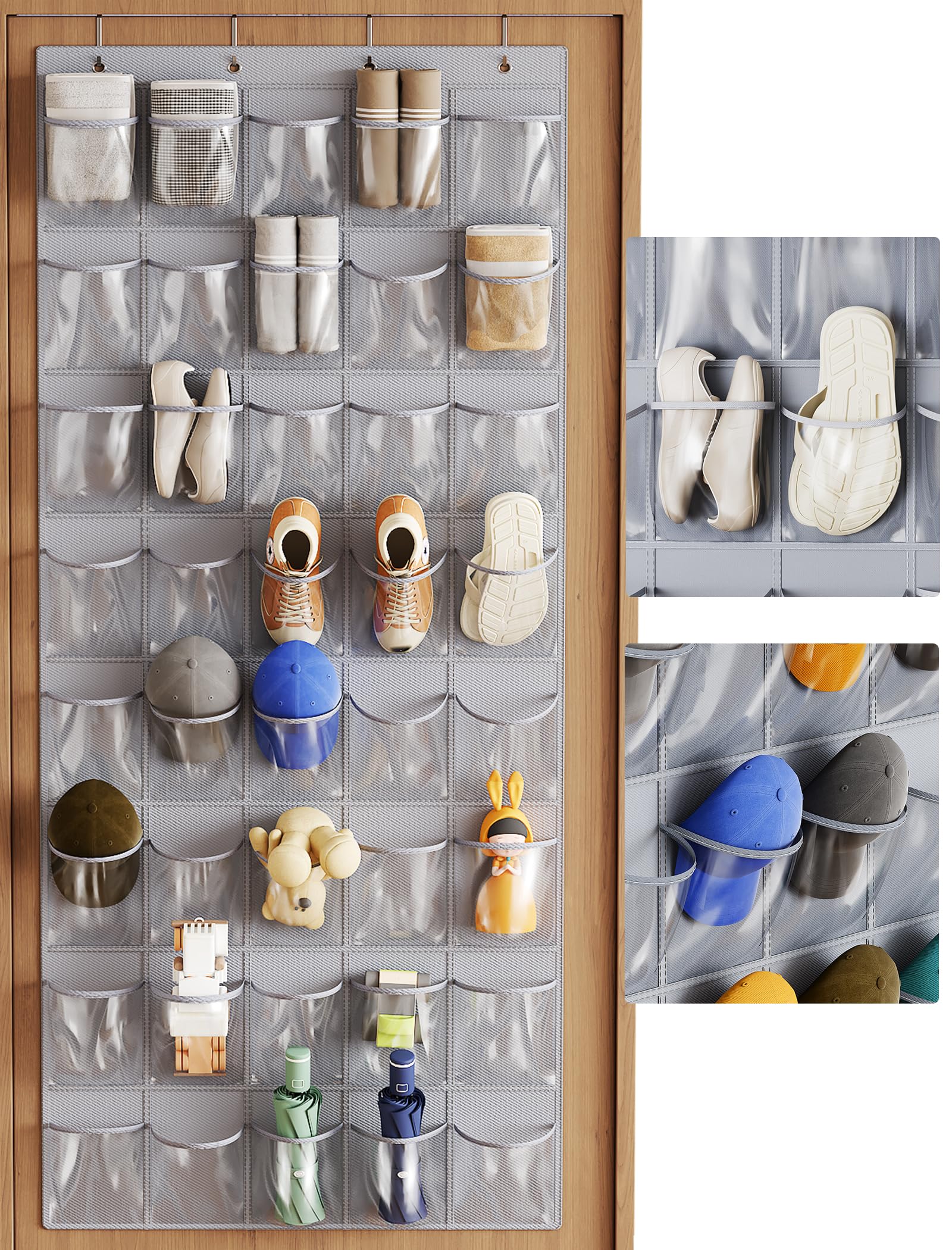 NiHome 40 Pockets Over the Door Hanging Shoe Organizer for Closet, Dorm Room Storage, Utility Room