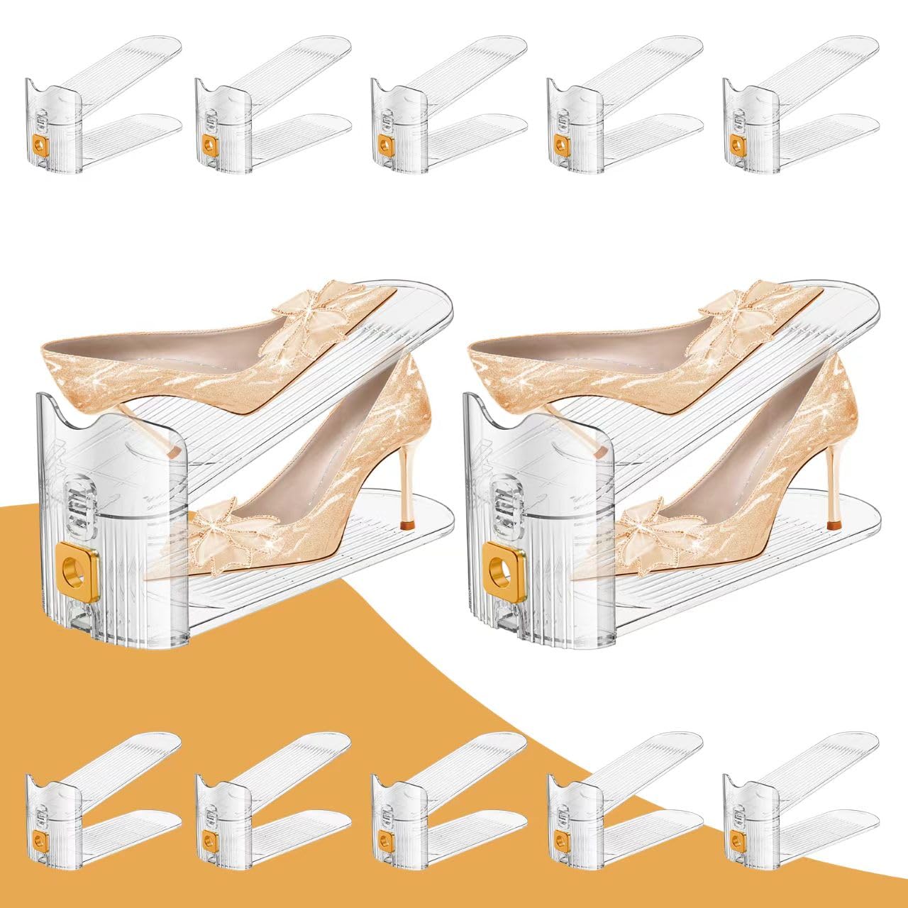 Organizador de ranuras para zapatos, paquete de 12 estantes organizadores transparentes para armario, 3 niveles ajustables de dobl