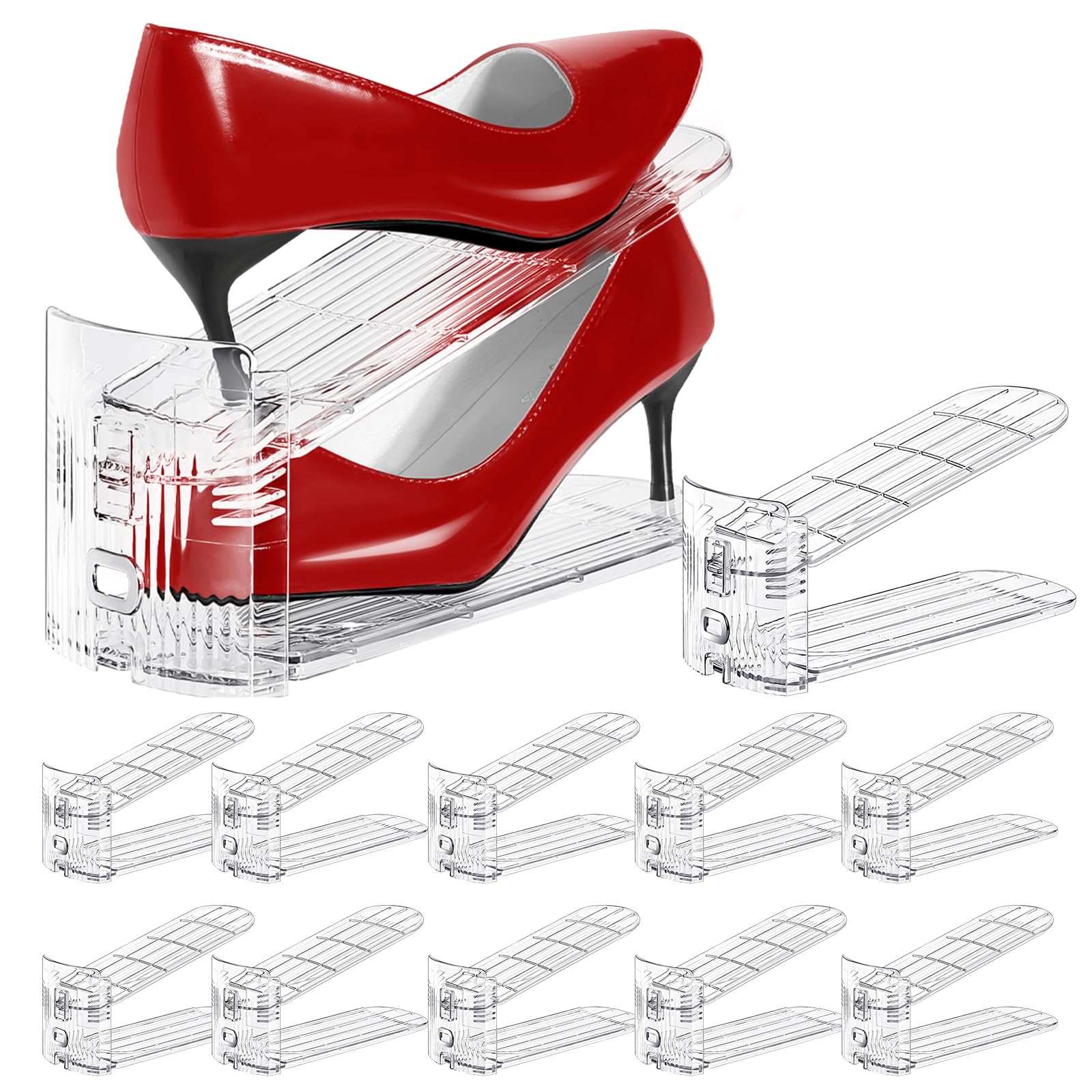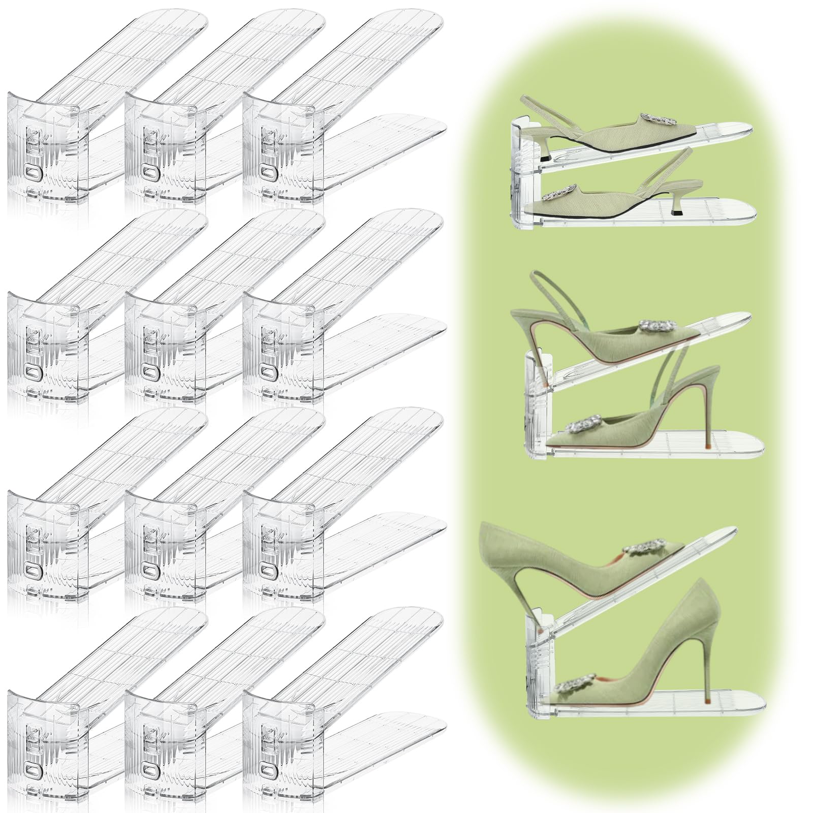Organizador de ranuras para zapatos, paquete de 12, apilador de zapatos ajustable, ahorrador de espacio, soporte de zapatos de dob
