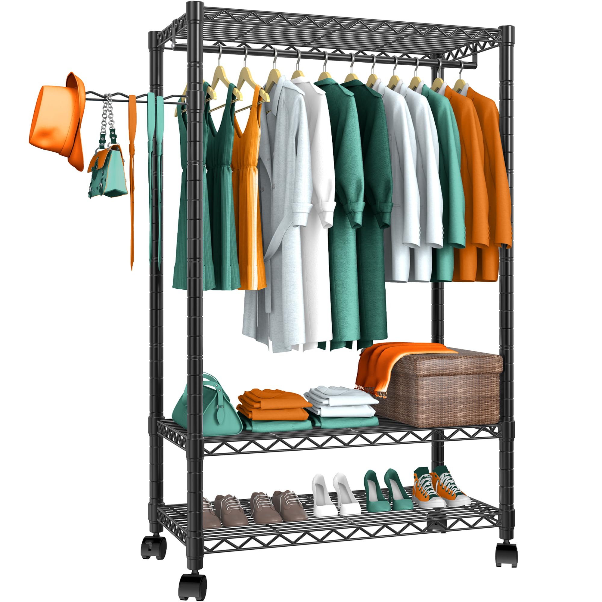 Perchero de ropa con ruedas, perchero de alta resistencia, estantes de ropa rodantes para colgar ropa, percheros portátiles de pie