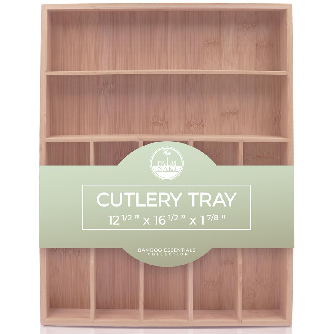 PALM NAKI Silverware Organizer – Bandeja organizadora de cubiertos de bambú de alta calidad, organizador de cajones de cocina para