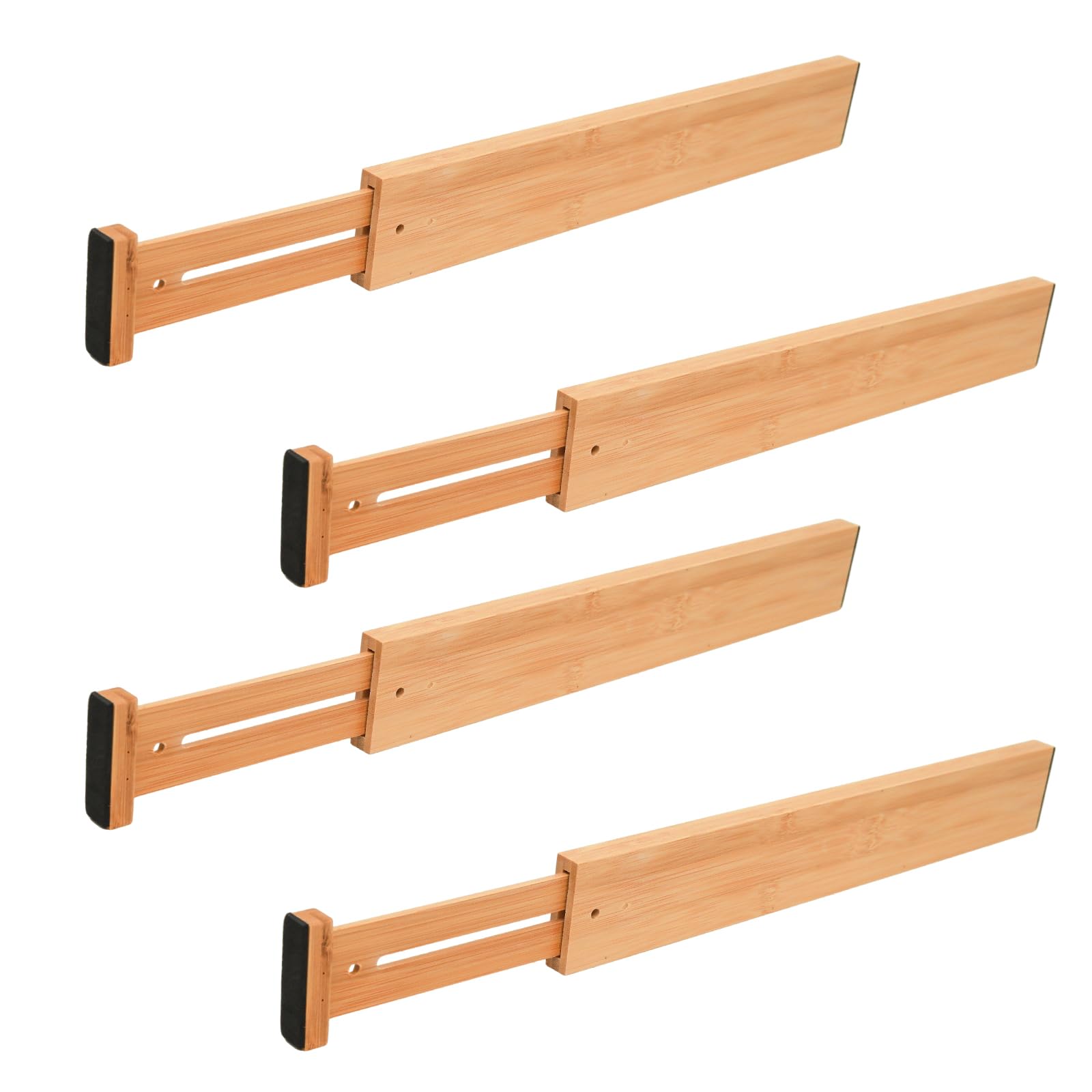 Lilaly 4 separadores de cajones de 16.9 a 22 pulgadas, separadores de cajones, separadores de cajones de bambú, organizador de caj