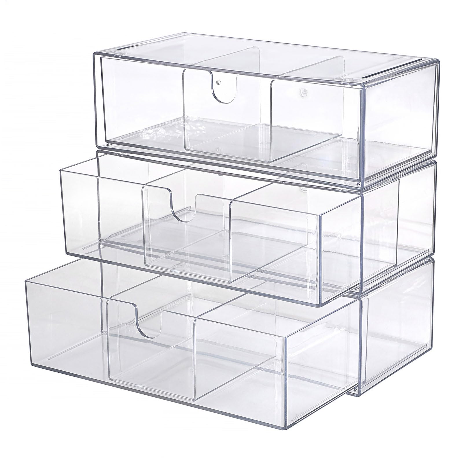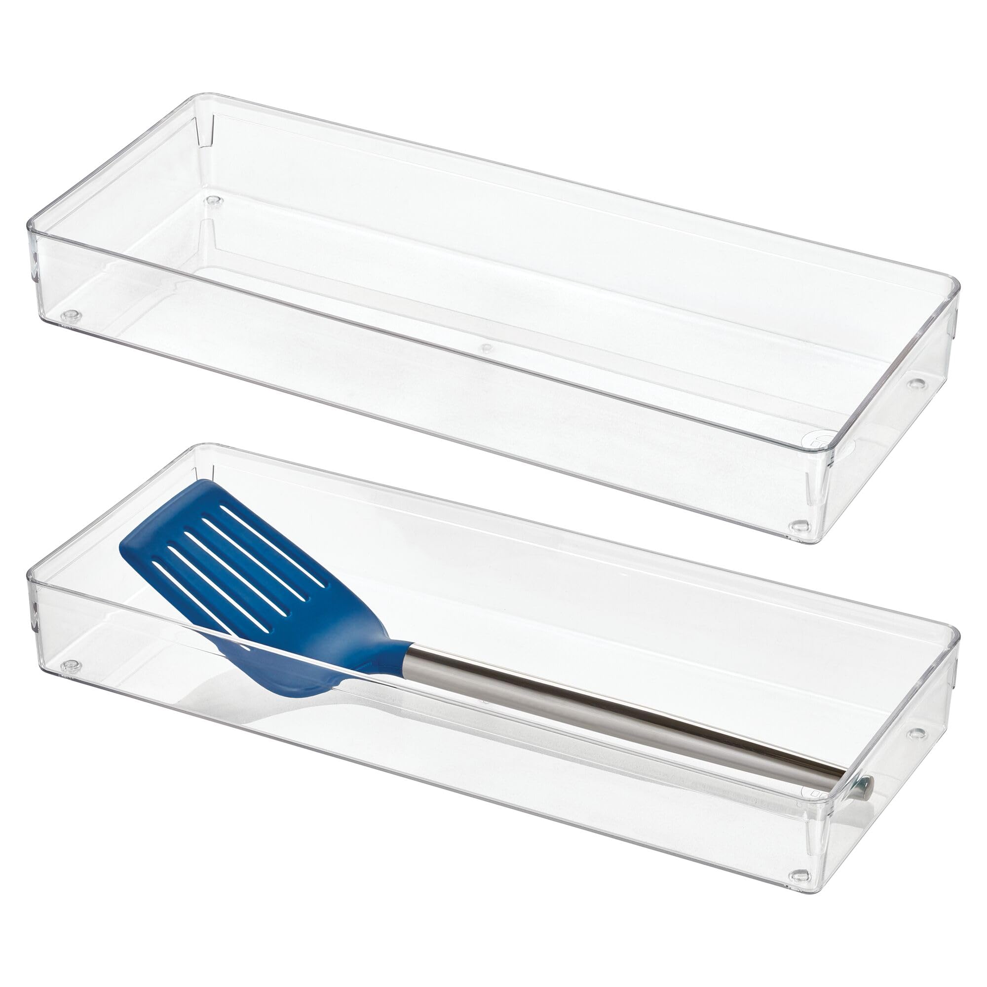 iDesign – Organizador de cajones de cocina pequeño, organizadores de cajones de plástico para cocina, juego de 2 unidades, transpa