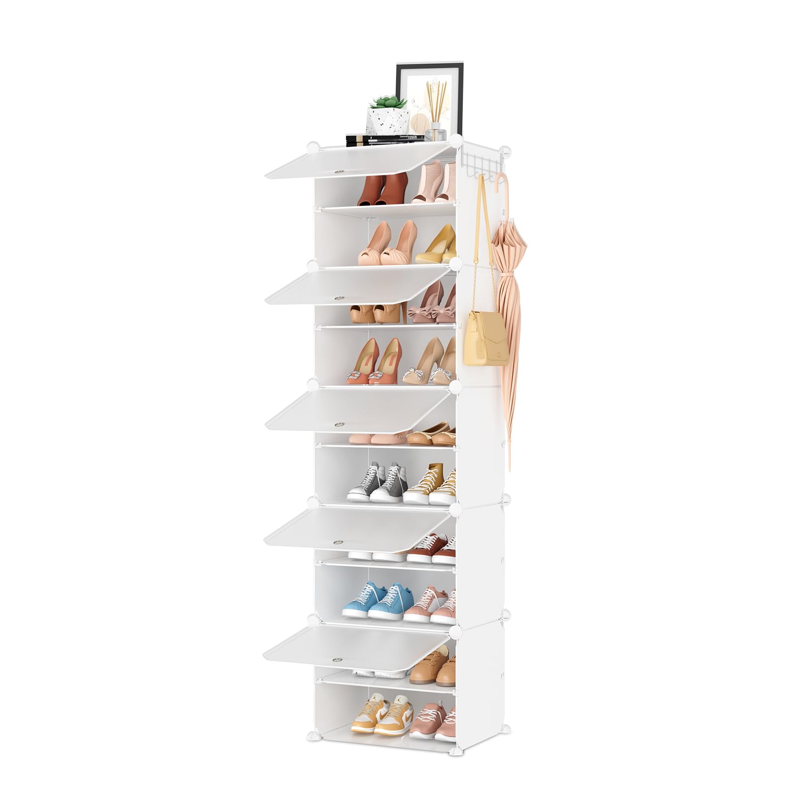 Zapatero organizador de 10 niveles con puerta, 20 pares de zapatos altos, ampliable, de plástico resistente, fácil montaje, estant