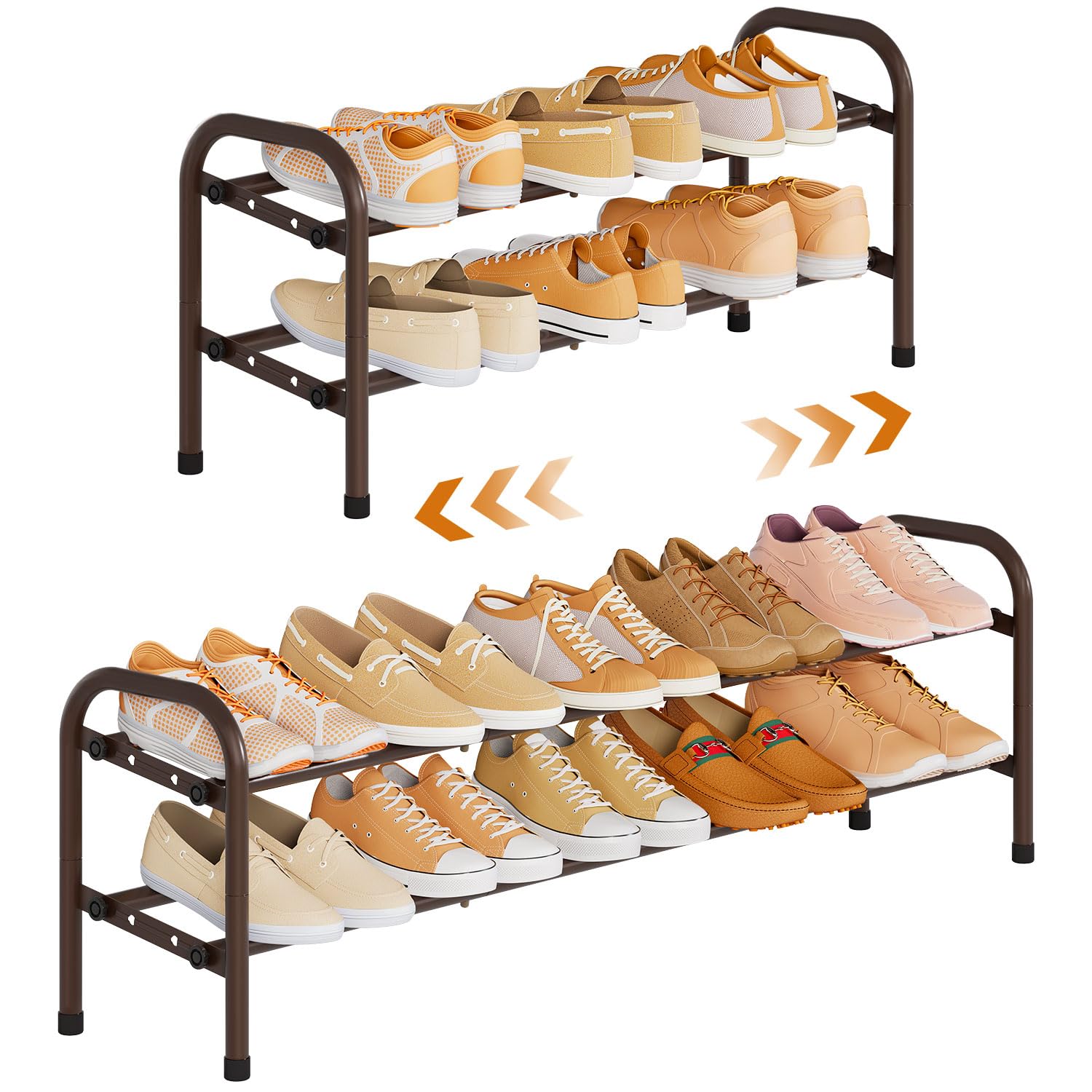 Zapatero – Organizador de zapatos expandible para armario, estante de metal ajustable, 2 niveles apilable largo soporte para zapat