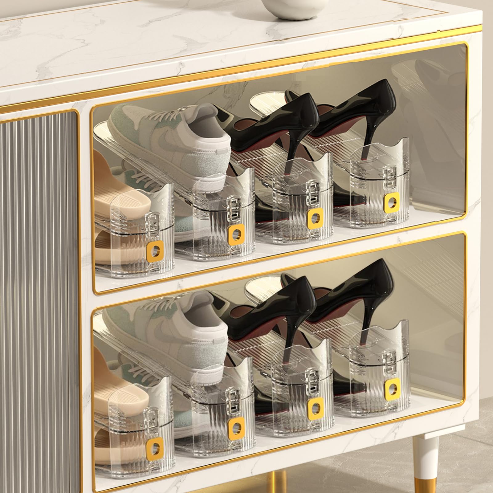 Upgrade Harder – Organizador de zapatos de plástico sólido, almacenamiento de zapatos con puerta frontal magnética, paquete de 6 c