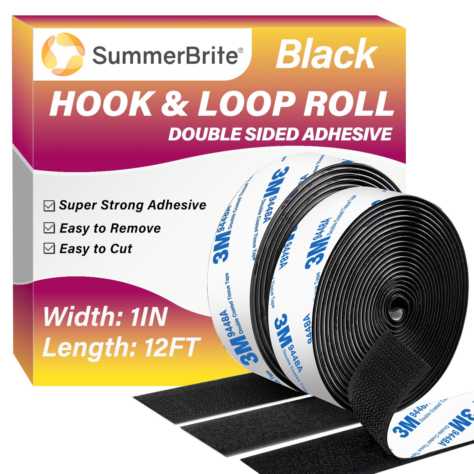 Cinta de gancho y bucle de 12 pies x 1 pulgada, tiras adhesivas resistentes de doble cara, fuerte cierre adhesivo en la espalda, c