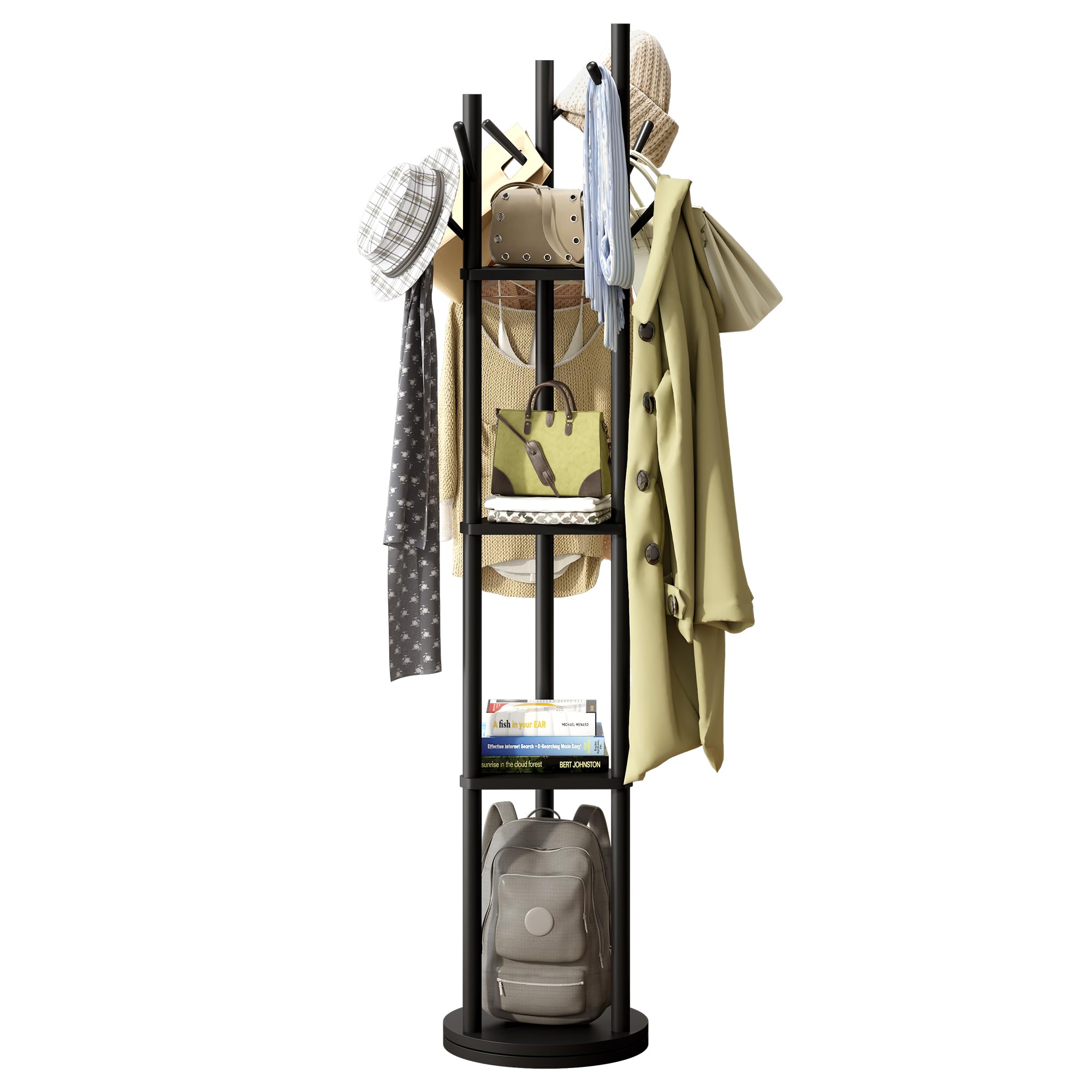 GHWIE Perchero rotativo, perchero independiente de 3 niveles con 9 ganchos y 3 estantes, ideal para colgar sombreros, bufandas, mo