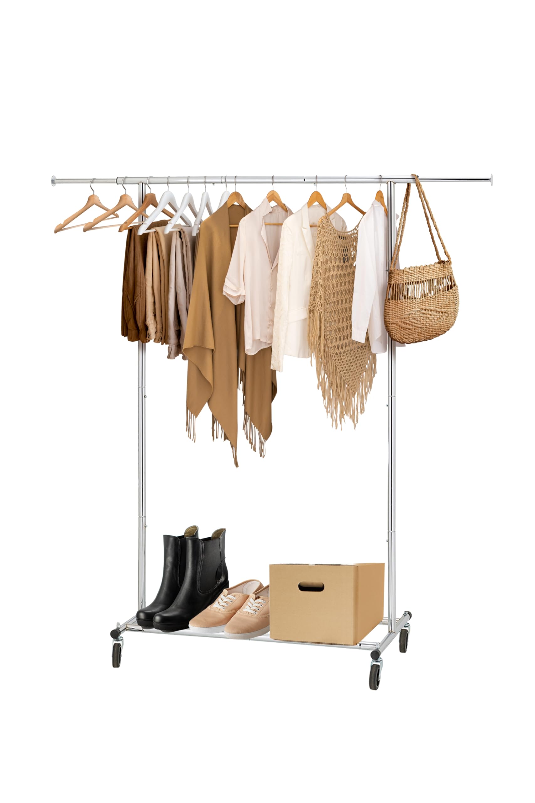 ikloo Perchero resistente para ropa, 130 libras de capacidad con barra extensible y estante inferior, estante de ropa de metal res