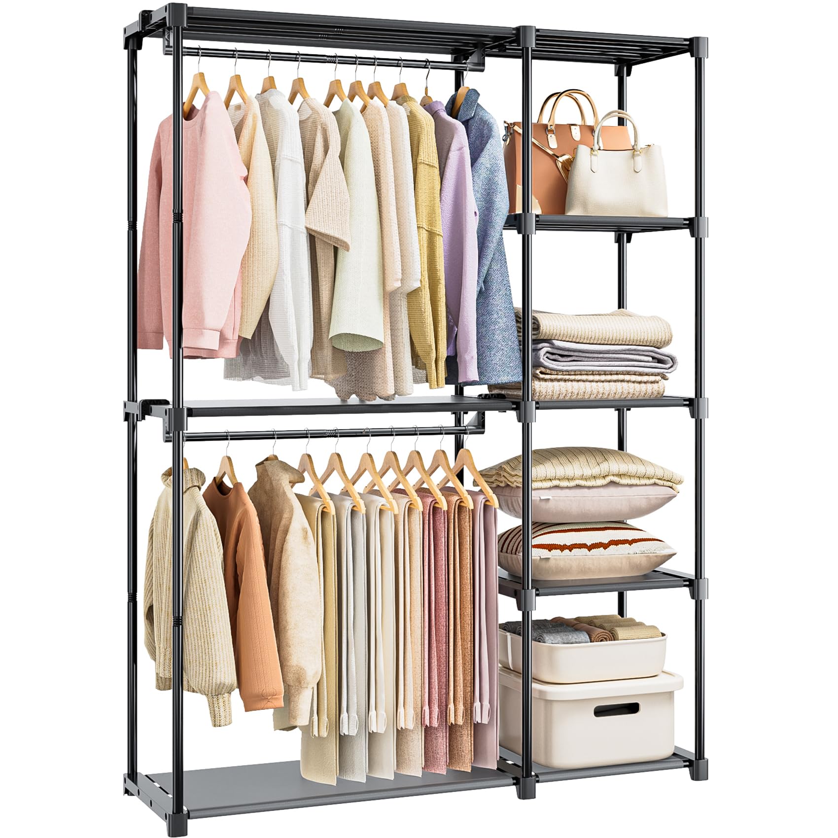 Perchero de ropa resistente para armario, sistema organizador de armario portátil con 4 barras para colgar y 8 estantes, perchero