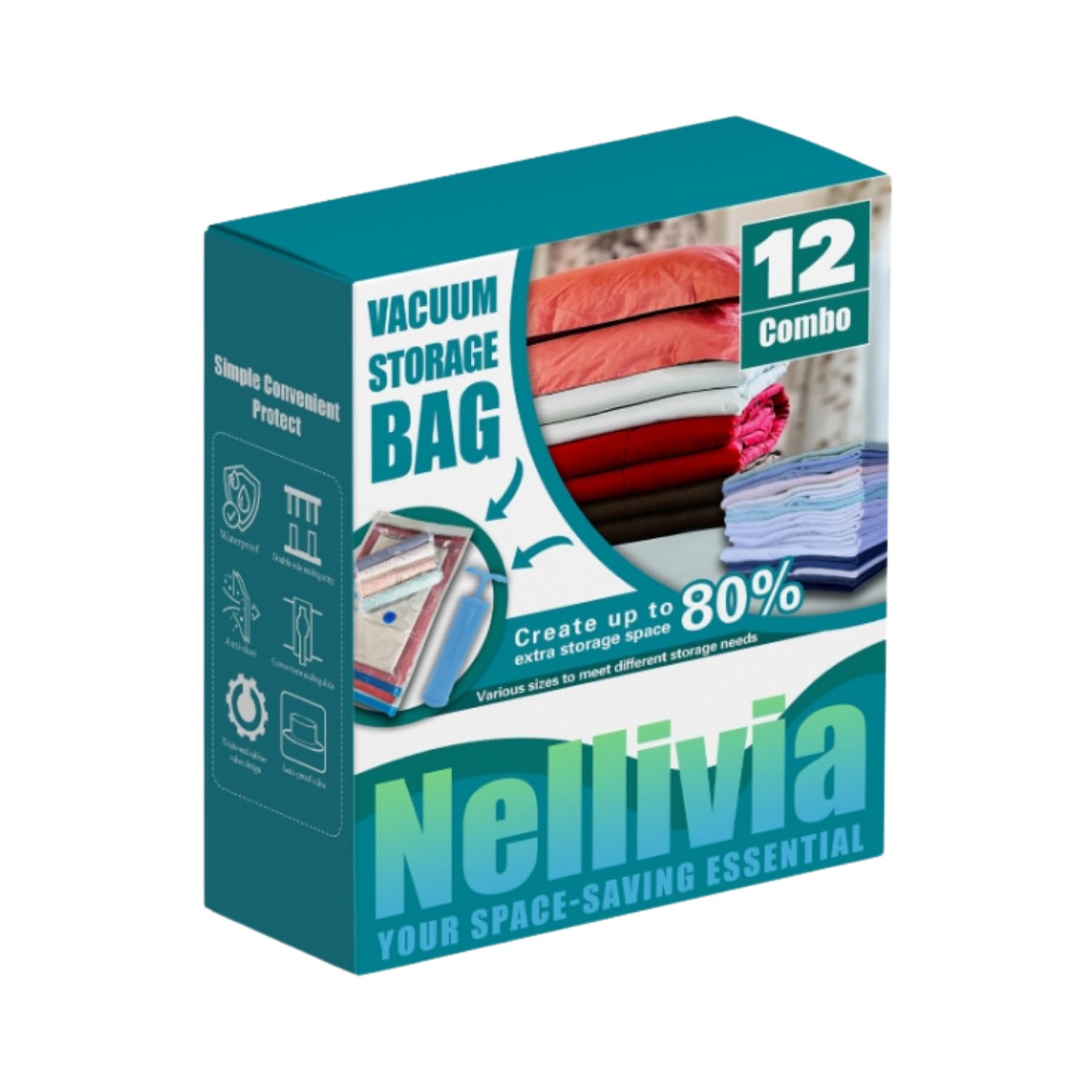 Paquete de 12 bolsas de almacenamiento al vacío con bomba de mano, ahorro de espacio de compresión para edredón, ropa de cama, alm
