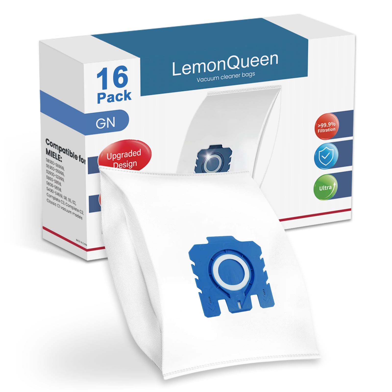 Paquete de 16 bolsas de polvo 3D Airclean de repuesto para Miele GN bolsas de aspiradora Miele Classic C1, C2 C3, S227, S240, S270