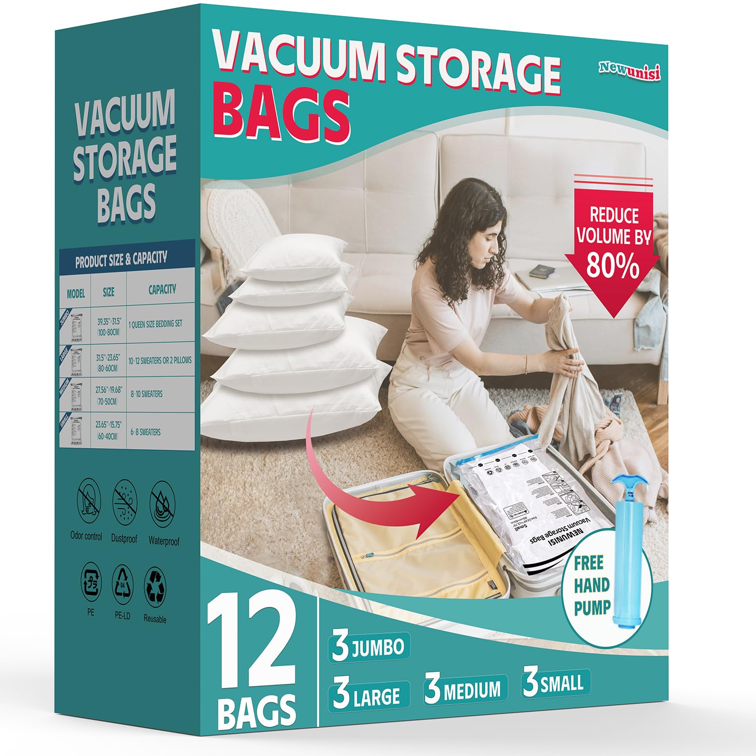 10 bolsas de almacenamiento selladas al vacío ahorradoras de espacio (2 jumbo, 2 grandes, 3 medianas/3 pequeñas) con bomba de mano