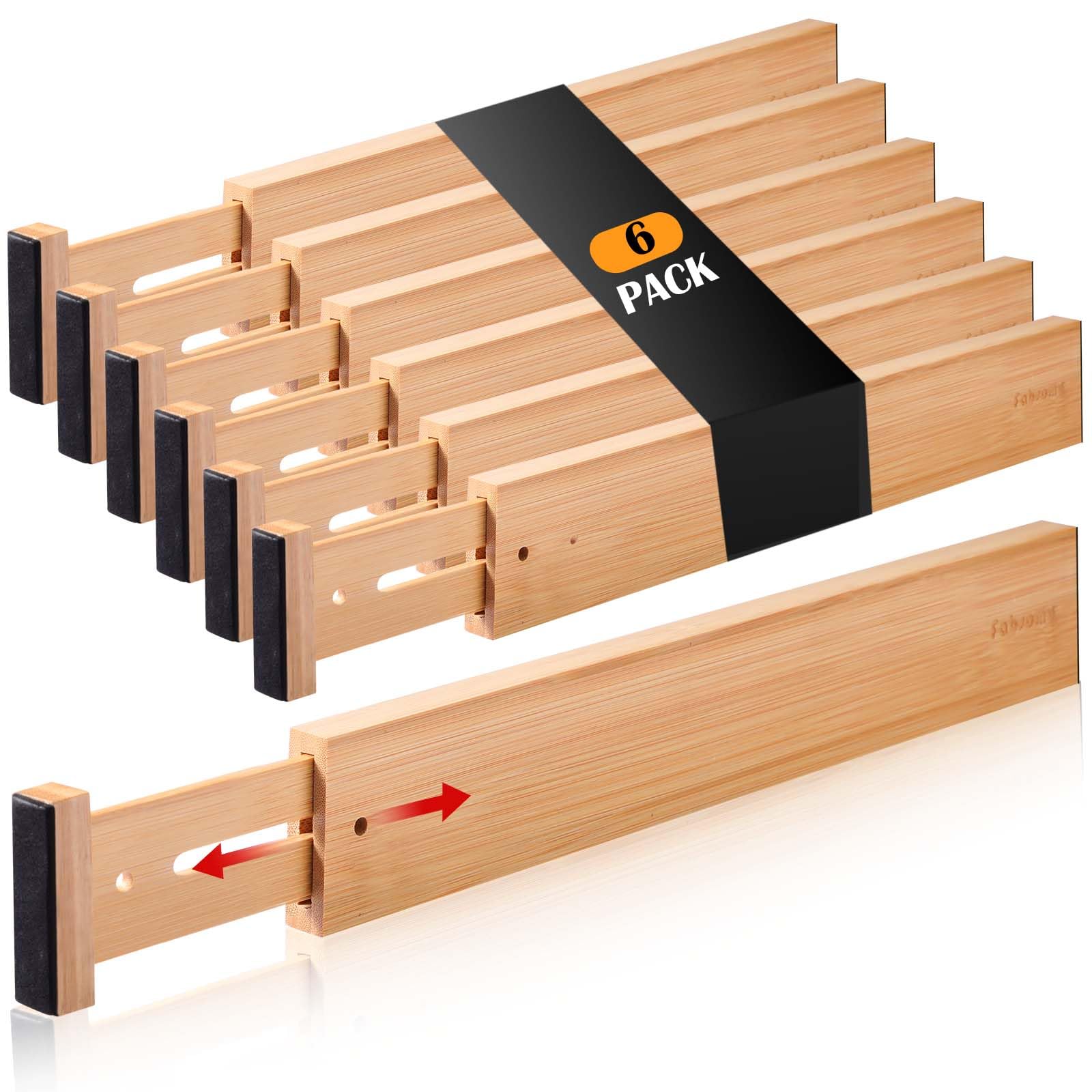 Fabsome Divisores de cajón, 6 unidades, organizadores de cocina de bambú ajustables de 17 a 22 pulgadas, separadores de tocador de