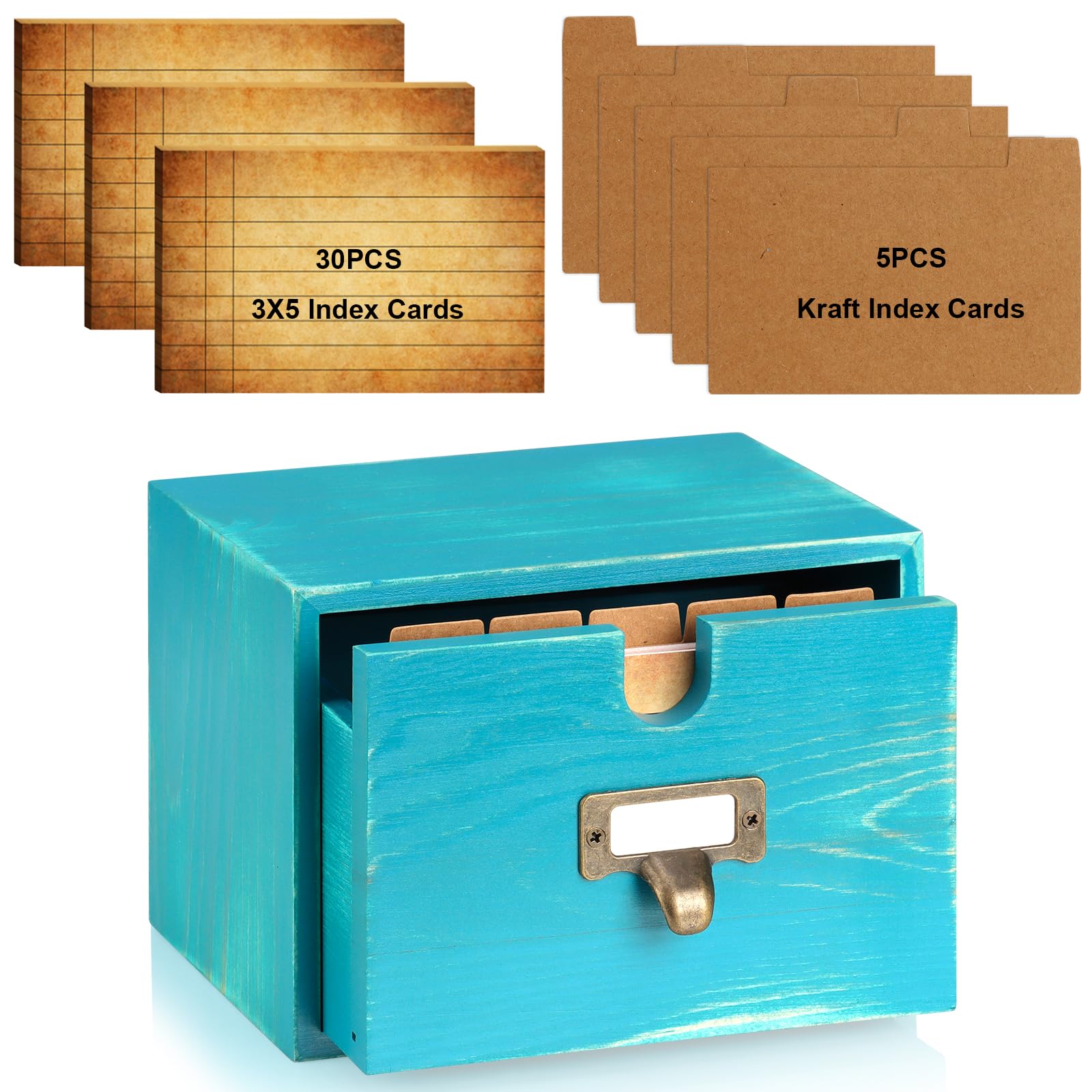 DLUGOPIS Soporte para tarjetas de índice de 3 x 5, caja organizadora de tarjetas de índice de madera, soporte para tarjetas de rec