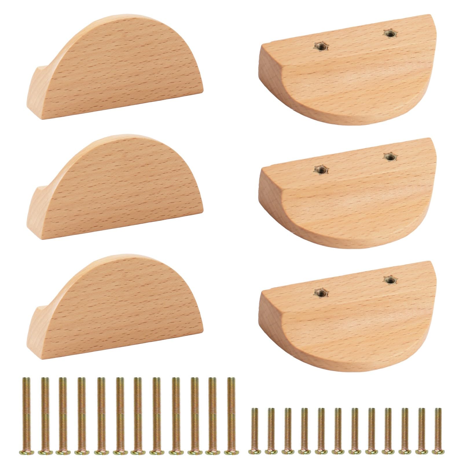 MOROBOR Manijas de cajón de media luna, 6 tiradores de madera semicírculos, de madera de haya, armario, cajón, manija de doble agu