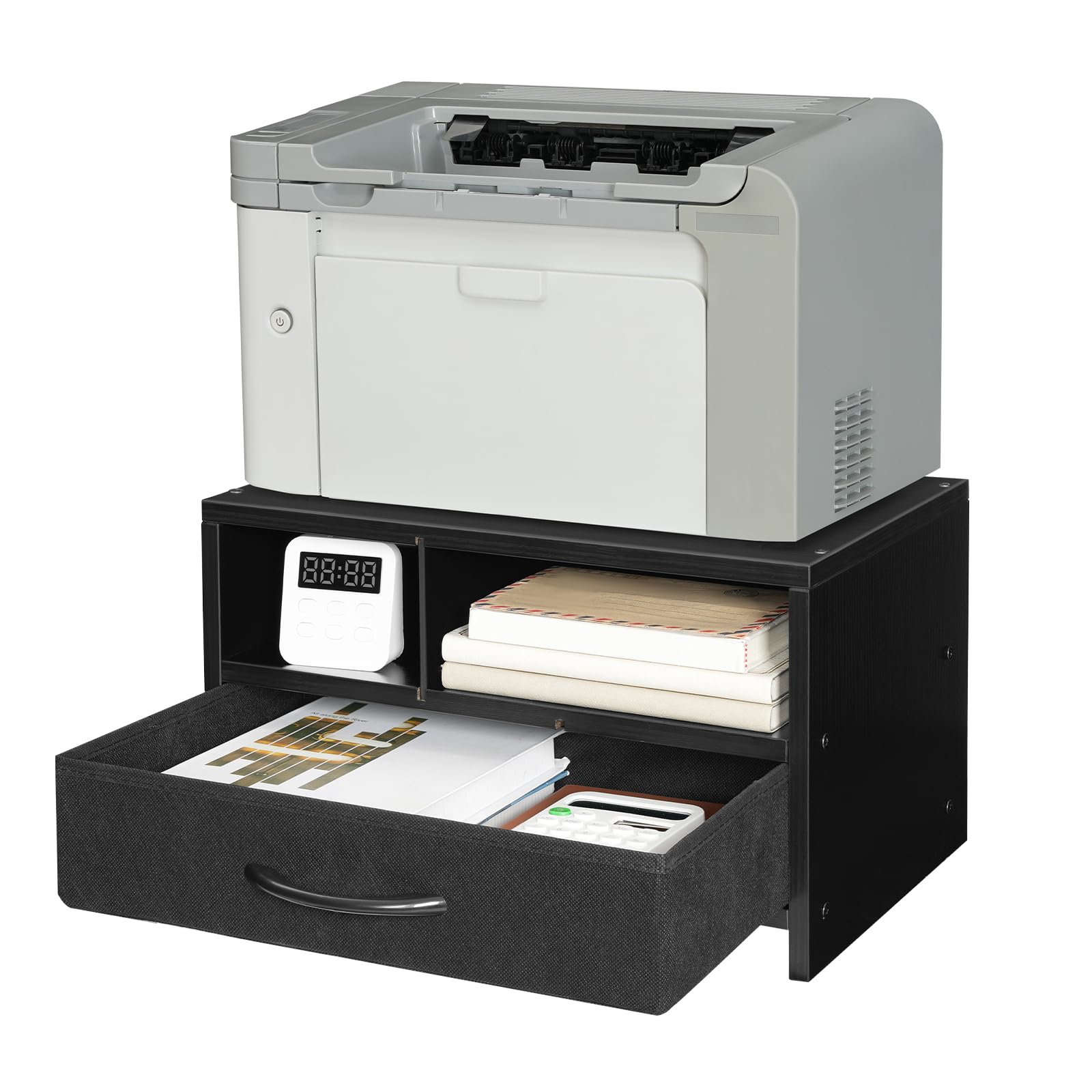 HOOBRO Soporte de impresora de escritorio, organizador de estante de impresora con cajón, mesa de impresora de madera debajo del e